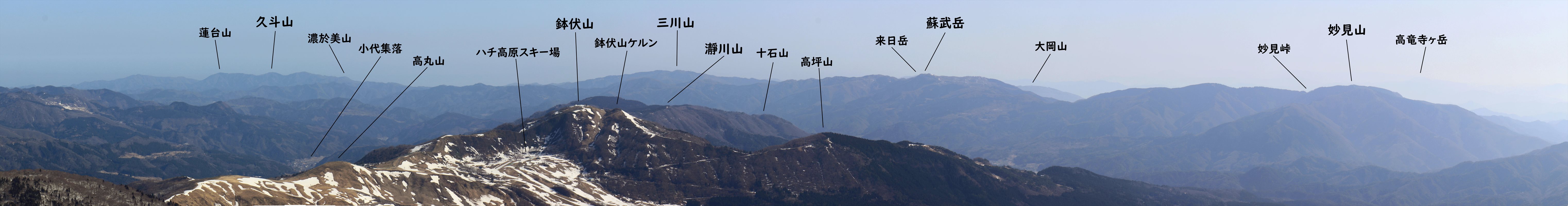 少し範囲を広げてみたもの。中央に見える稜線を延々歩いてきました。