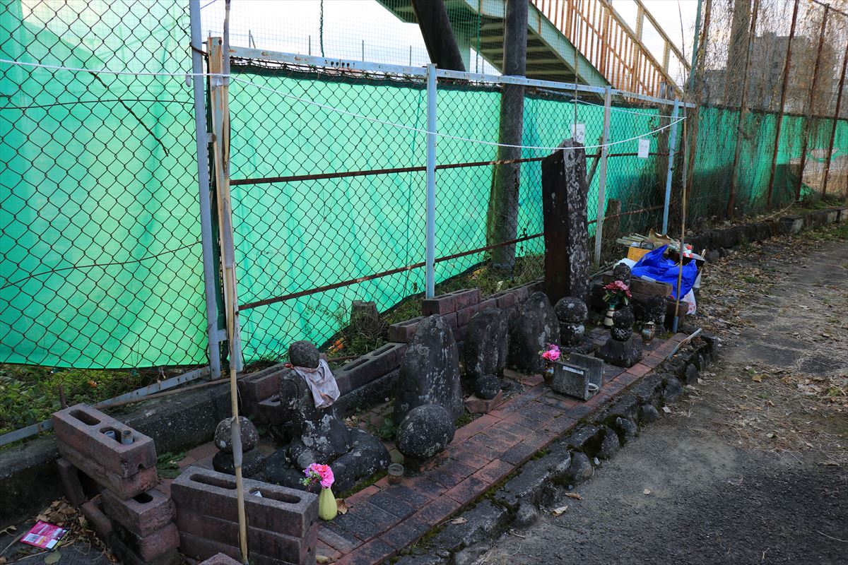 今昇ったばかりの朝日に向かって歩き進めていく。古くからの集落のようで、道端には道祖神が置かれていました。付近には大雄山線の五百羅漢駅の駅名の由来となった玉桂寺がある。