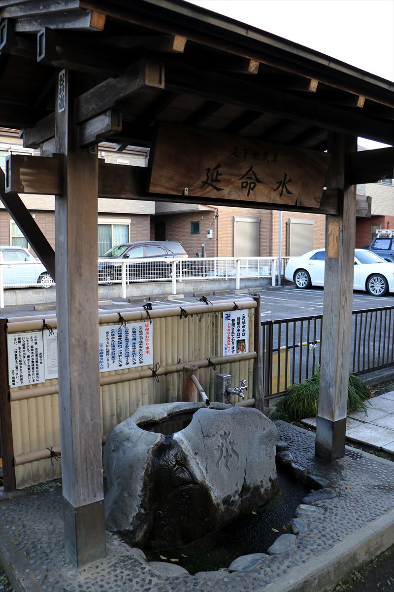 こちらが件の延命水。手水場からも水は流れていますが、水を汲む場合はすぐ隣の蛇口から給水するようです。