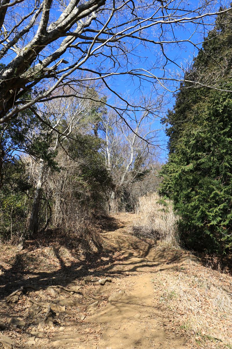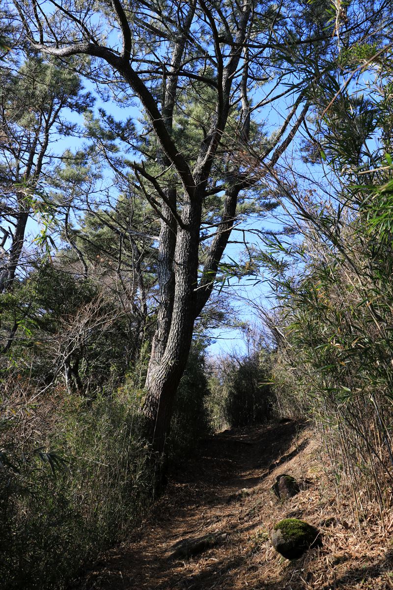 山頂方面に歩いていくと二宮金次郎芝刈りコースの分岐に差し掛かる。こちらのコースはその名の通り、二宮金次郎こと若かりし頃の二宮尊徳が芝刈りに訪れていた山道のようで、麓の集落の名前から矢佐芝コースとも呼ばれているようです。