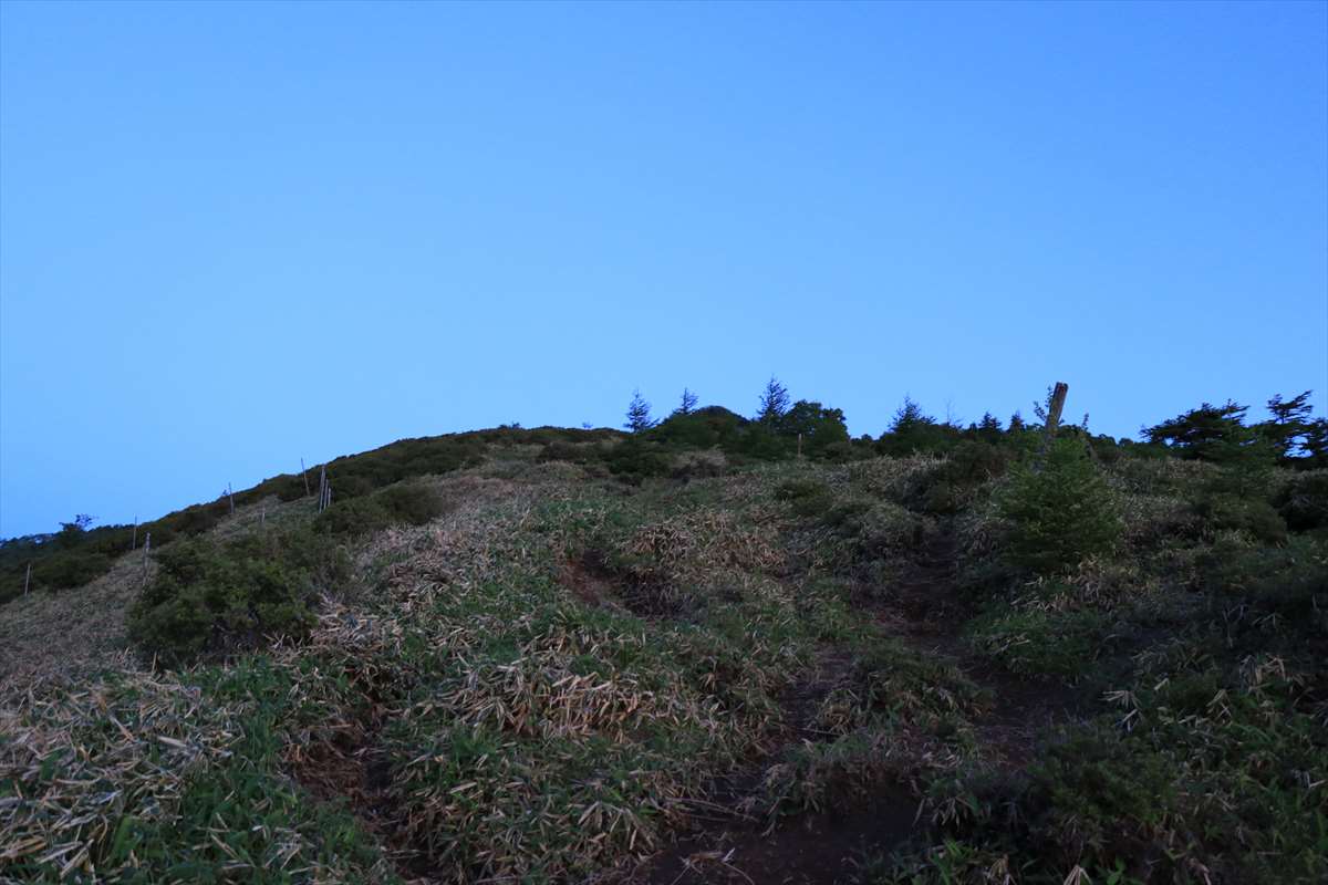 赤薙山方面の登り。既に足元も薄明るかったので最初からヘッドライト無しで進んでいく。
