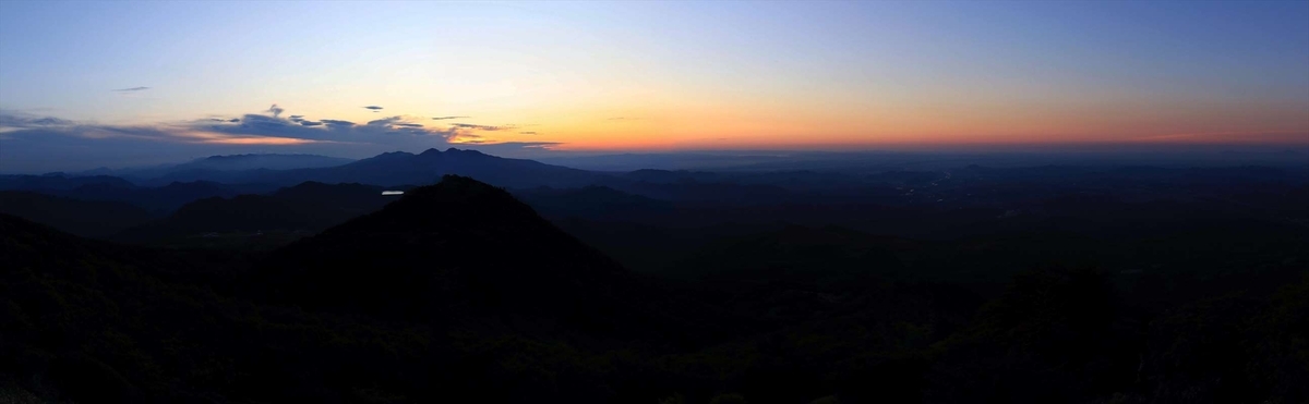 日の出直前の空の様子。高原山の背後の辺りが一際明るい。