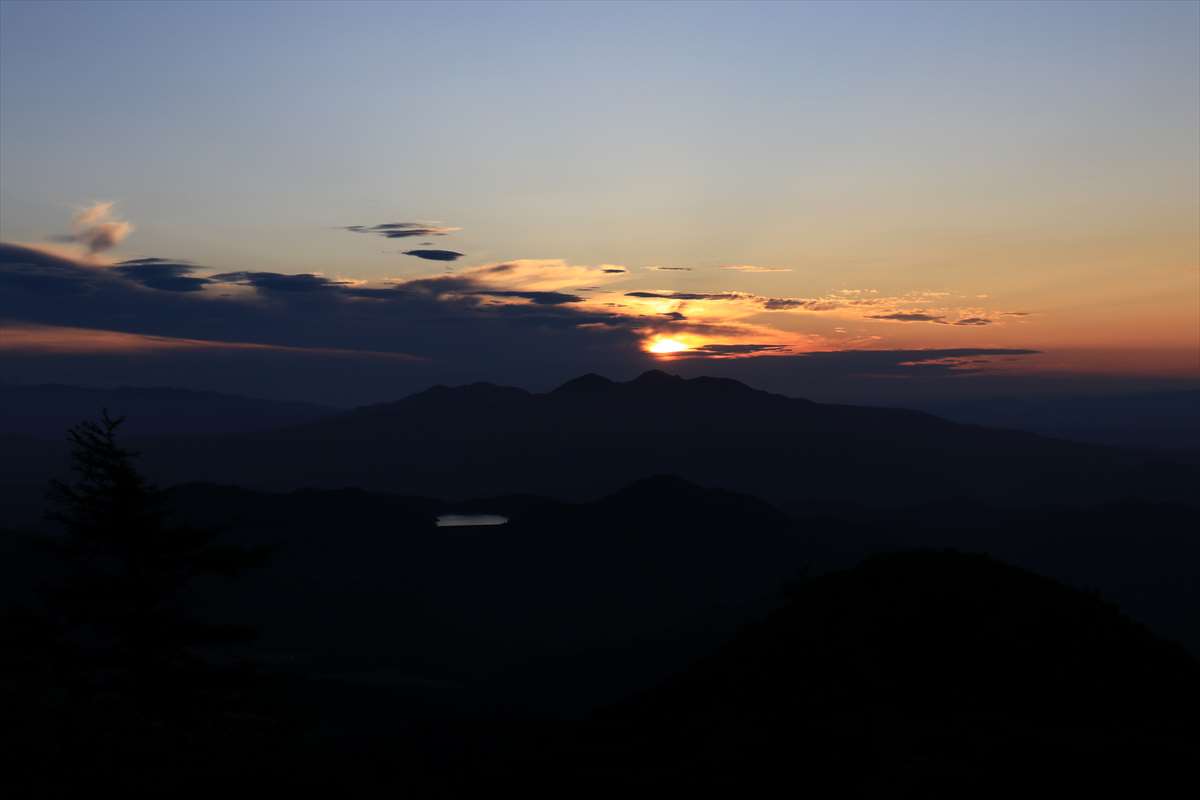 暫くして、太陽が地平線に近付いてきた頃の山頂。