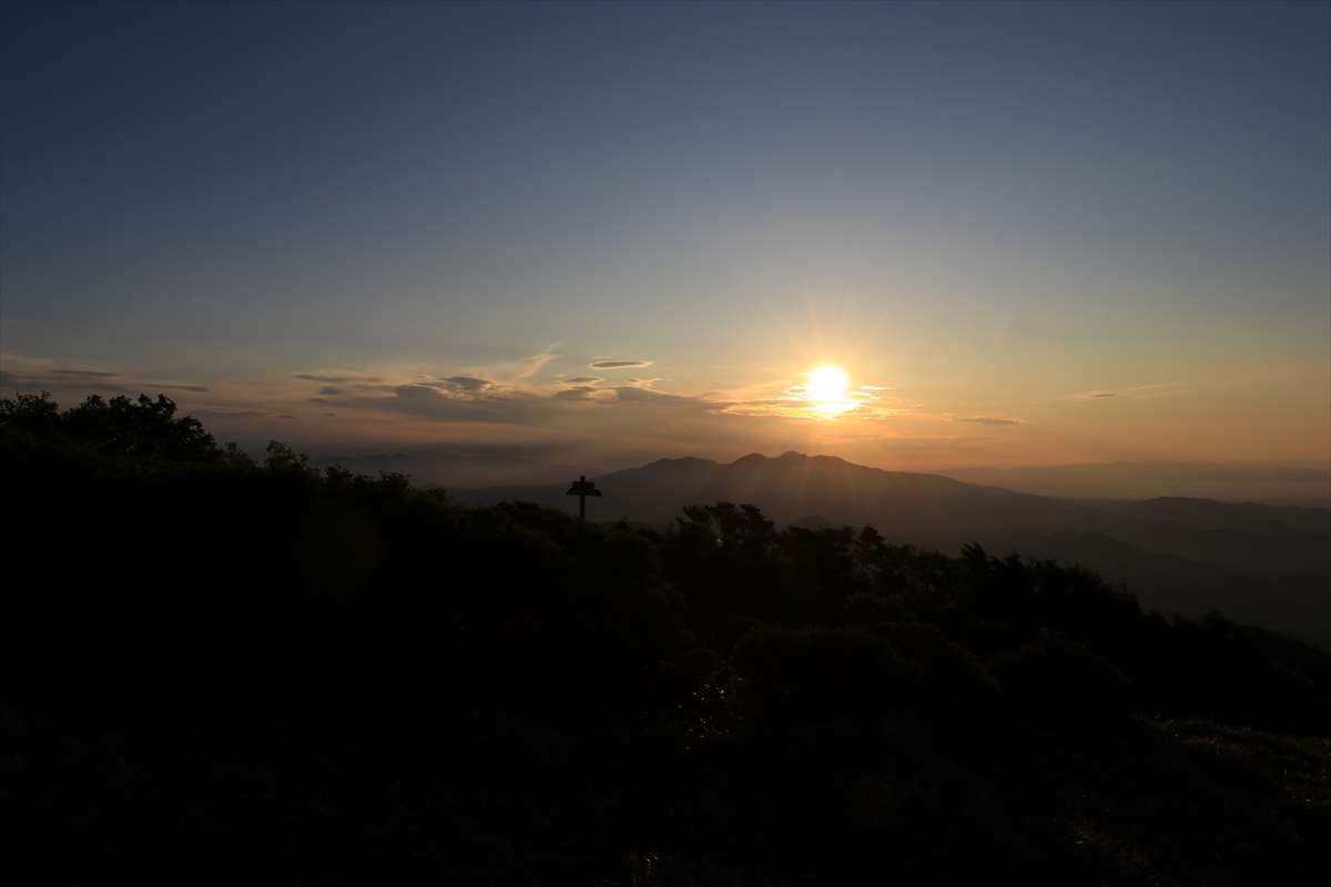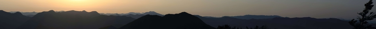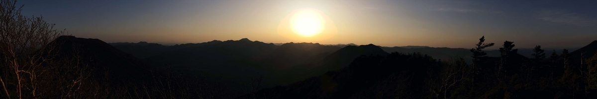日の出後の東方面の展望……日が昇ってくる辺りを除いて雲はほぼ皆無。女峰山を登るこの2日目は前半部のメインと据えていたので好天なのは何より。