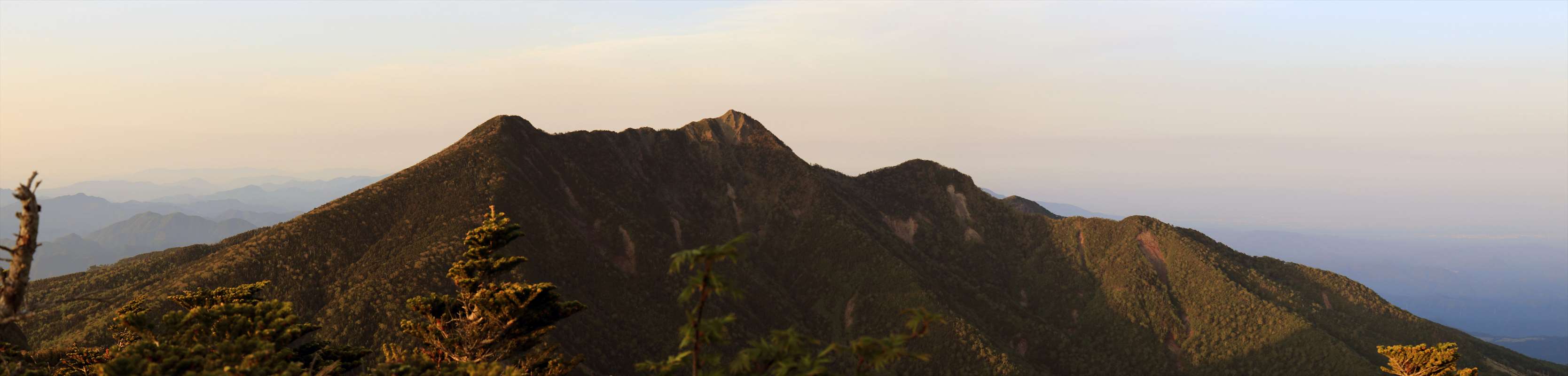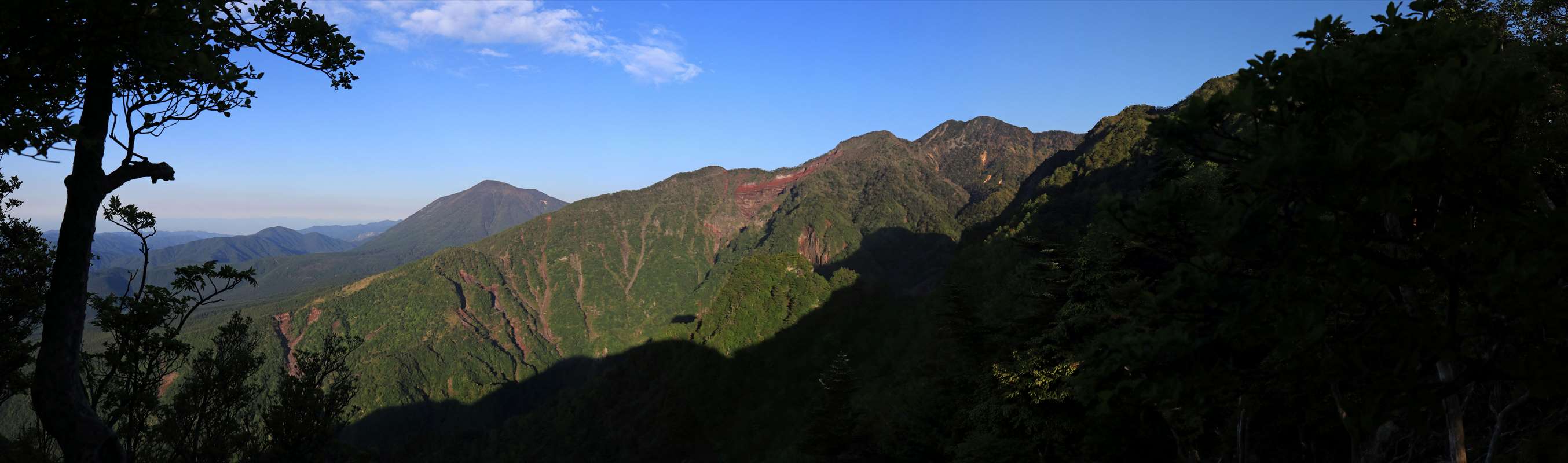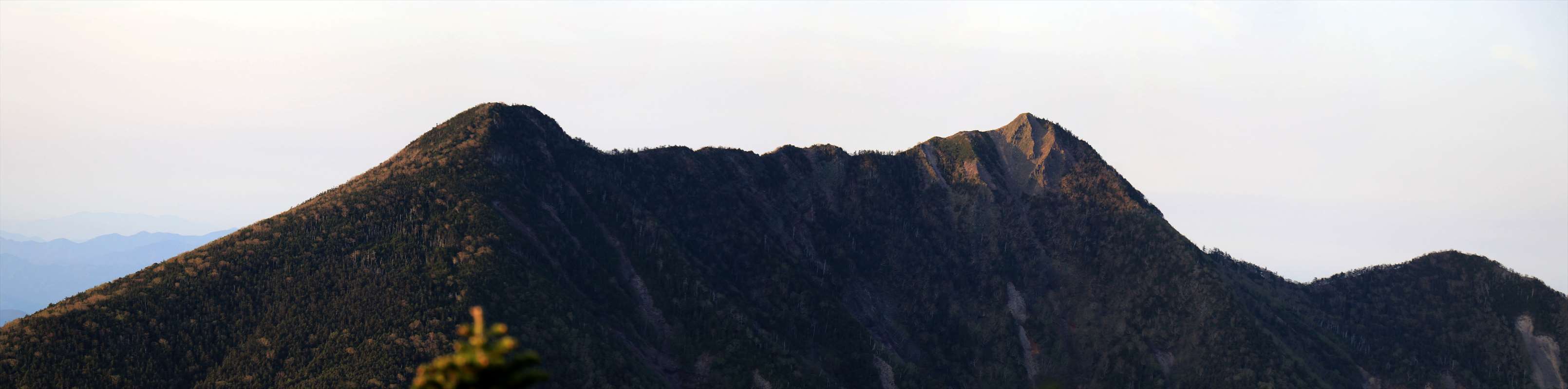 帝釈山から女峰山にかけての望遠。山容も切り立っていて格好いい……等と、ぼんやりと眺めながら日本酒を飲み本日は終了。アルコールのパワーによるものか、足の違和感もこの頃にはだいぶ和らいでました。