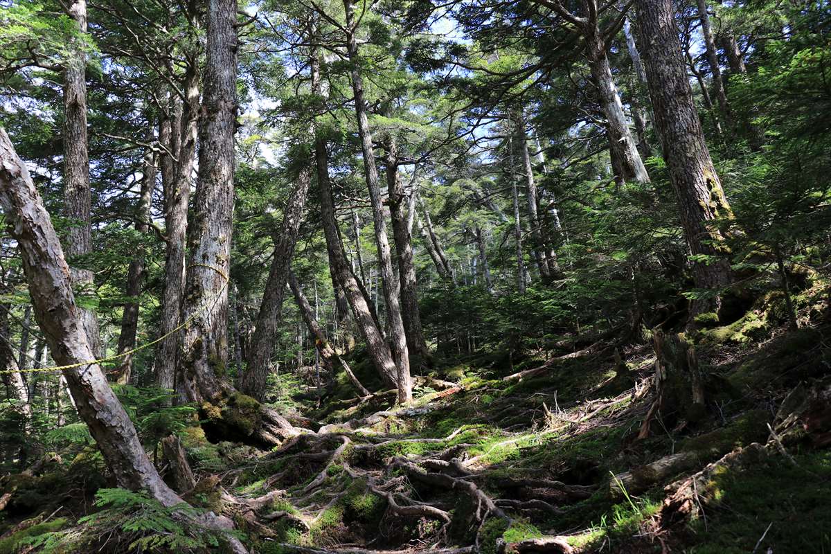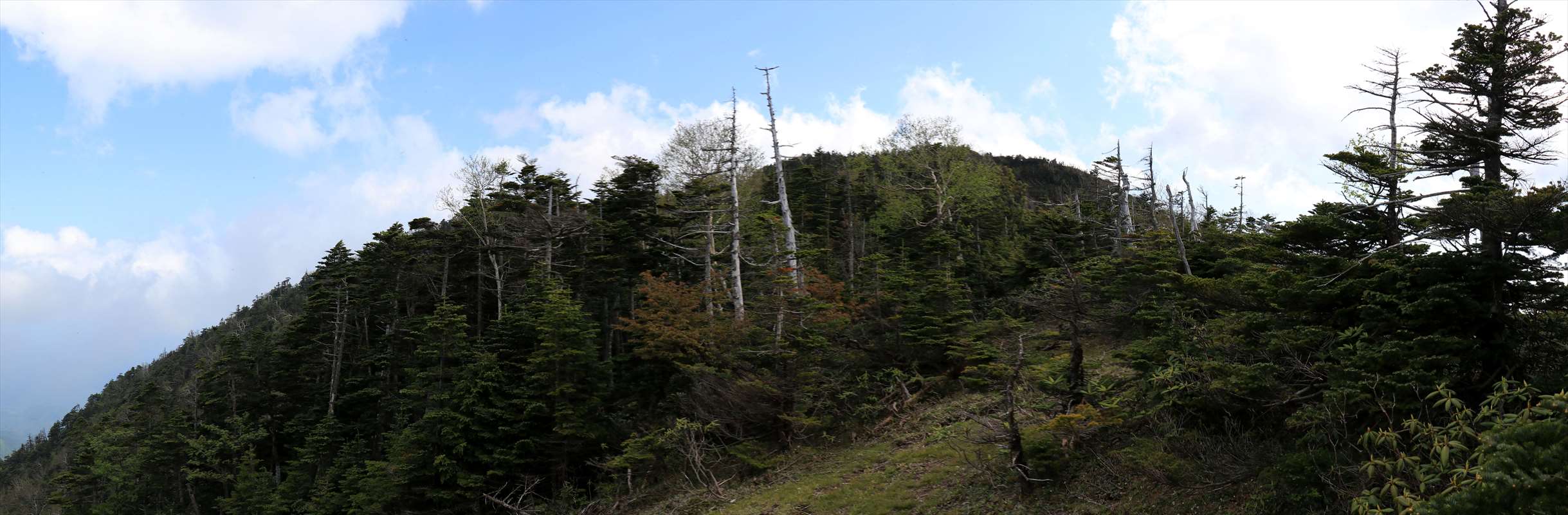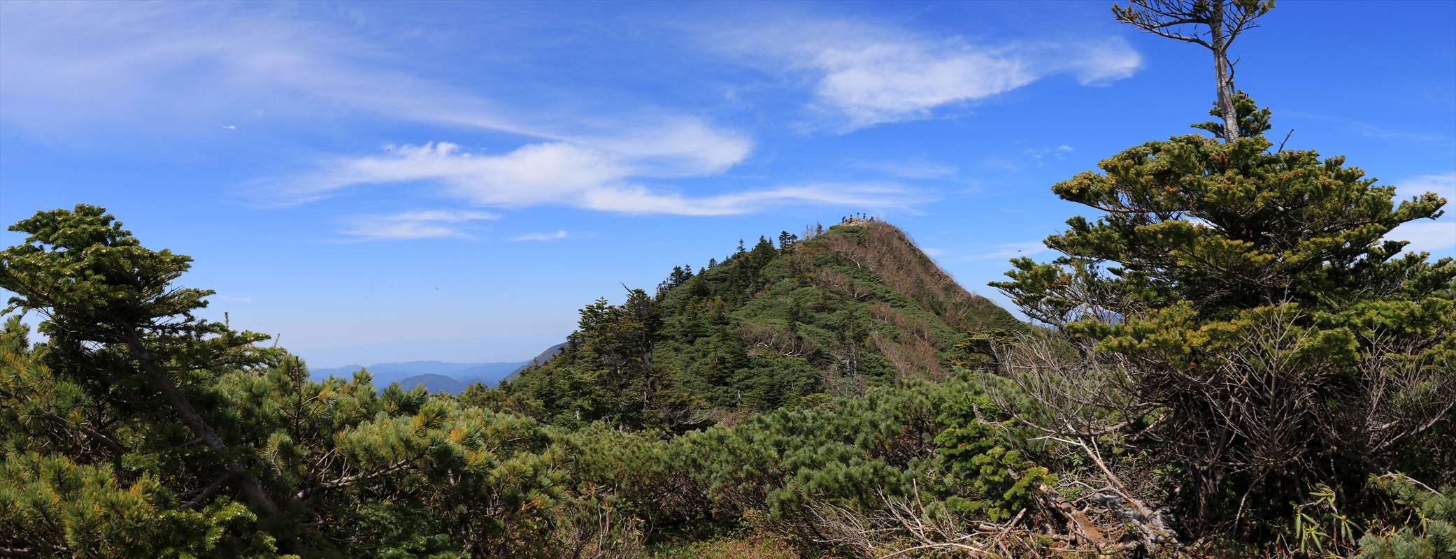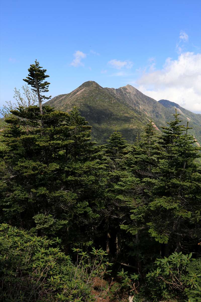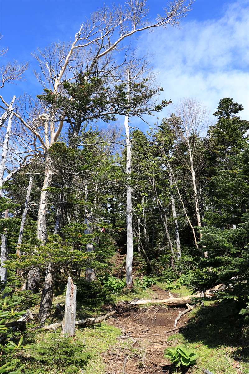 奥社跡から一度登り返して2209mピーク、それ以降は植生が変化しシャクナゲの多い道となります。