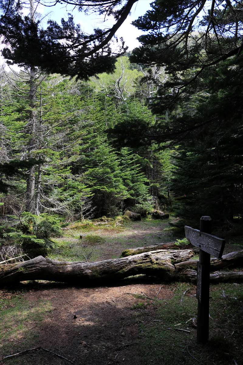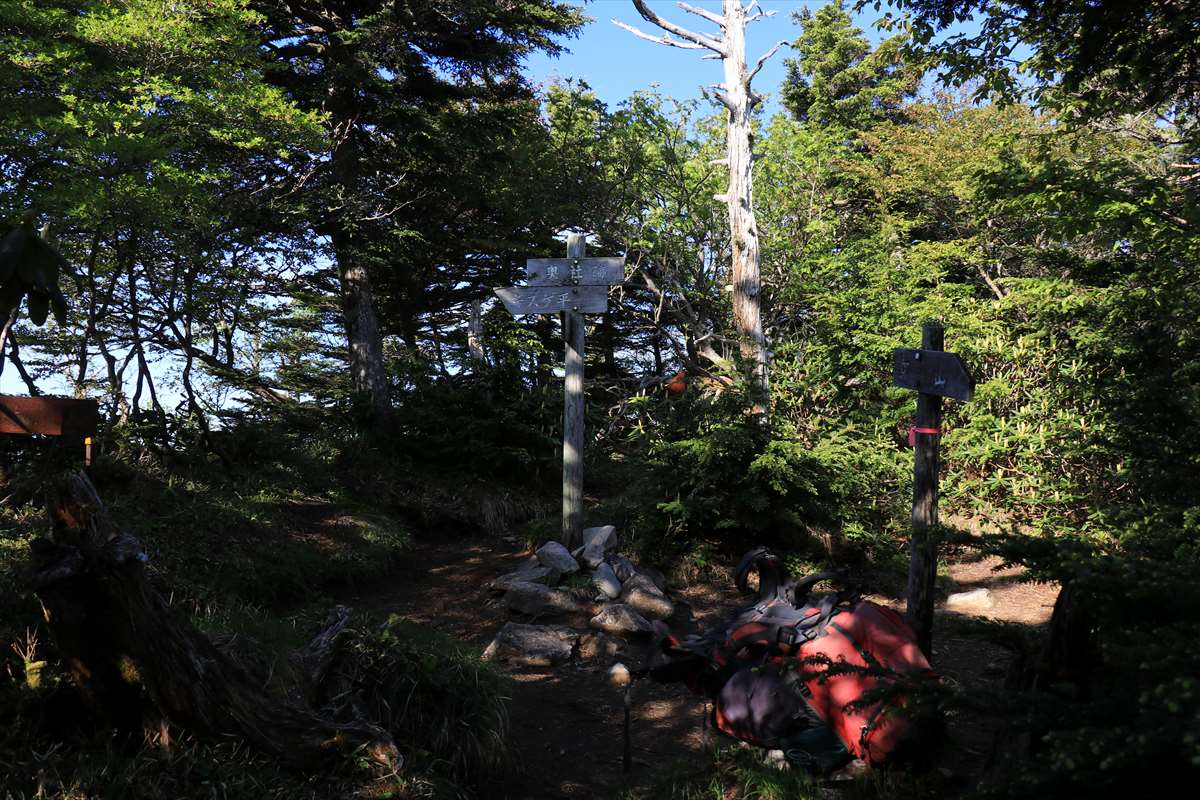 大真名子山に到着。コースタイムでは1時間と少々の下りで予定していた志津避難小屋まで行けますが、そこまでの標高差は600m。足の調子が悪いという事もあり、大事を取って本日はここで早めの行動終了としました……女峰山手前の水場で多少汲んでおいたのが役立ちました。
