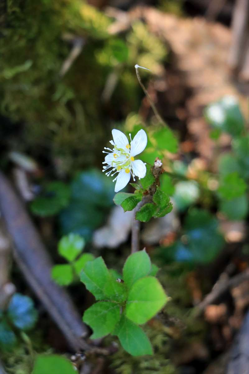 バイカオウレンとイワカガミ。イワカガミはこの辺りの区間では特に多く見かけました。