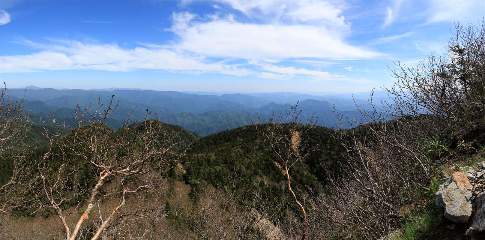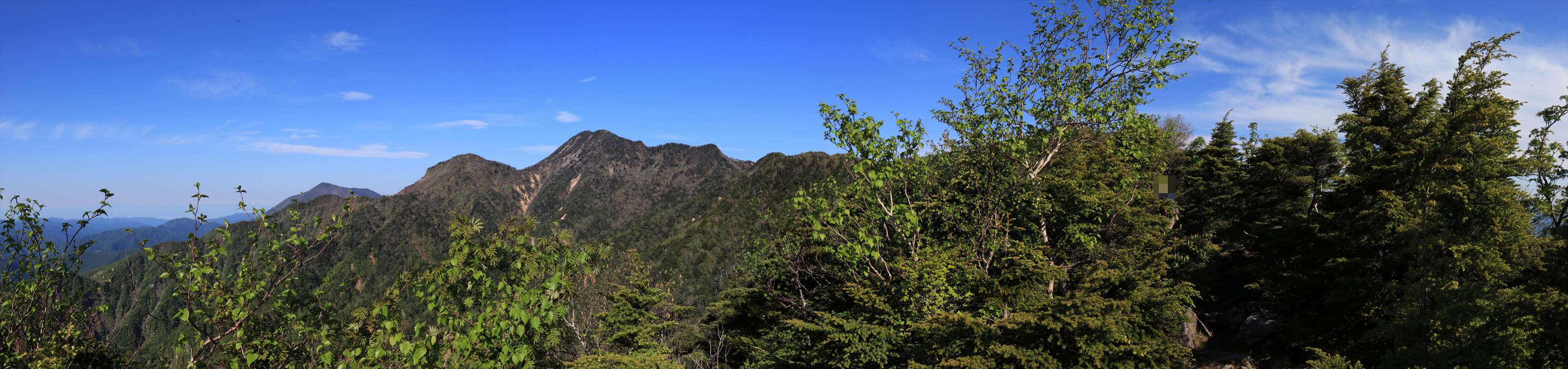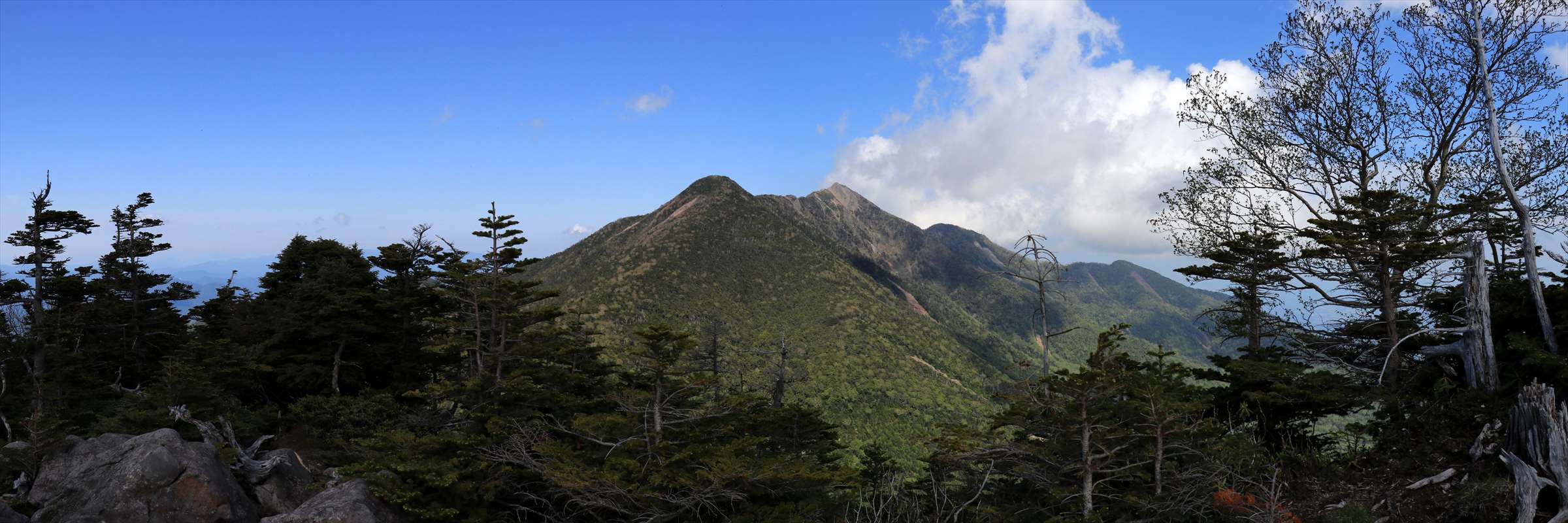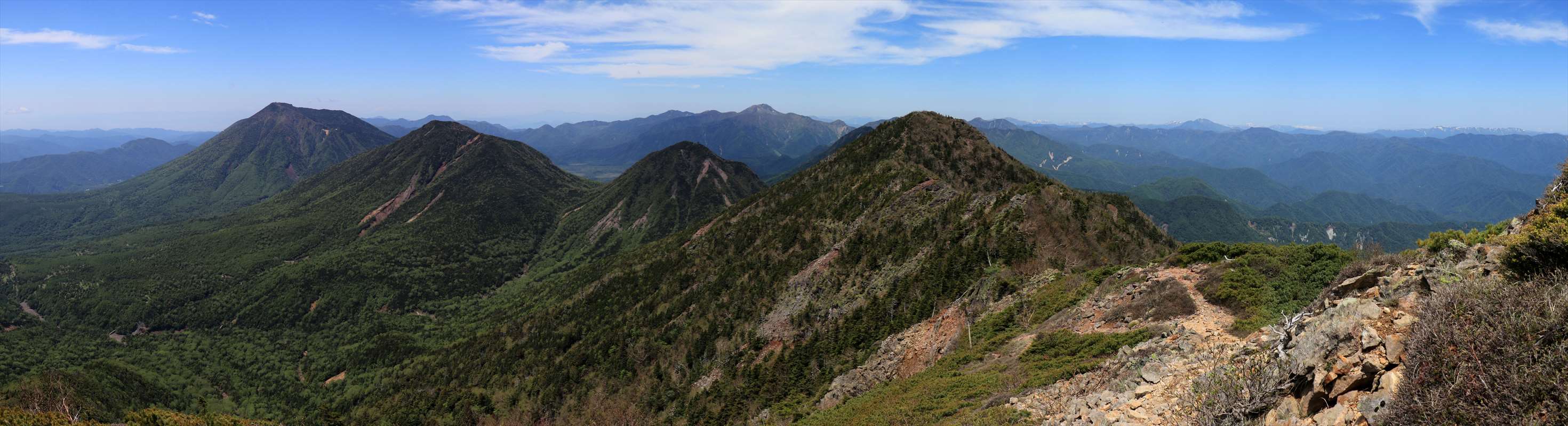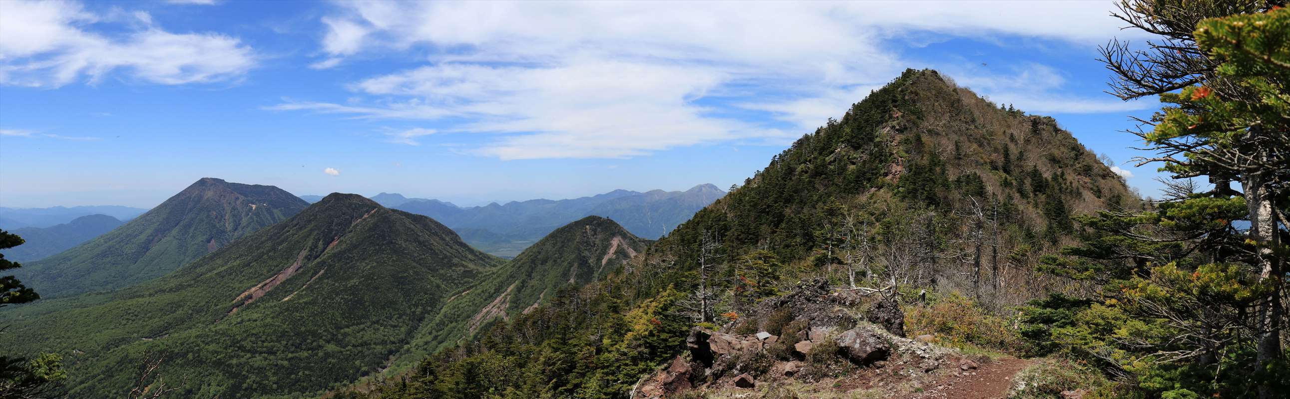 険しくなってきたと同時にコース上も開けてきました。こちらは一里ヶ曽根からも見えた北方面の山々。山肌に雪が残る会津駒ヶ岳が一際目を引く。