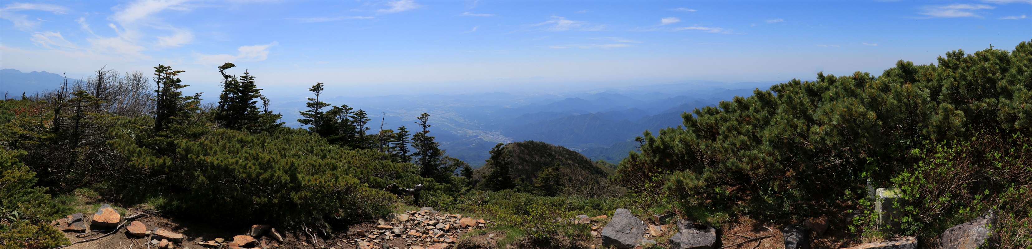 一里ヶ曽根からの展望……ほぼ360度の展望です。正面に見えるのが先程越えてきた赤薙山や奥社跡のピーク。その背後には広々とした関東平野。