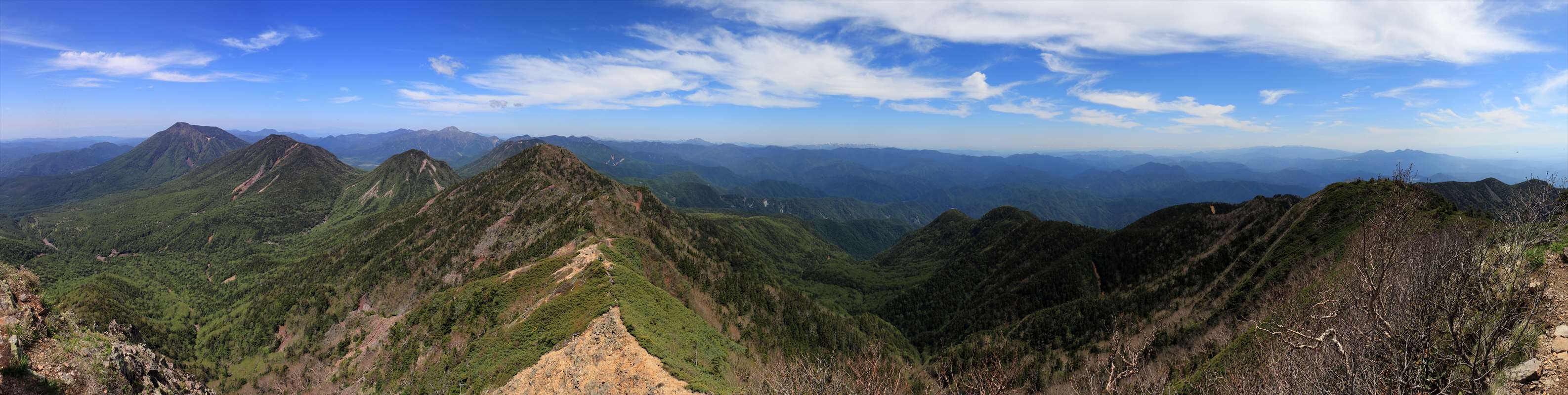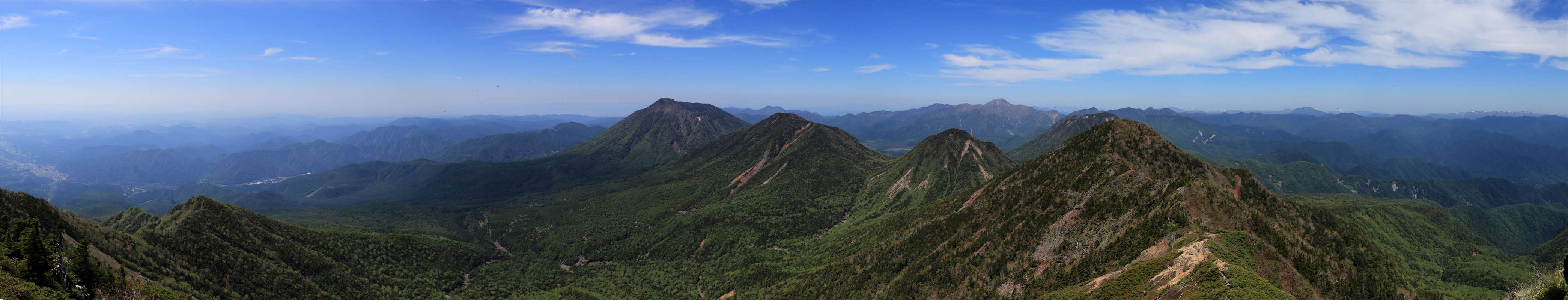 女峰山からの展望。切り立った鋭鋒という事もあり完全な360度……こちらはこれから向かう帝釈山、小真名子山、大真名子山、男体山方面。この起伏の激しさ、尾根というよりは独立峰がそれぞれ並んでいるようにも見える。