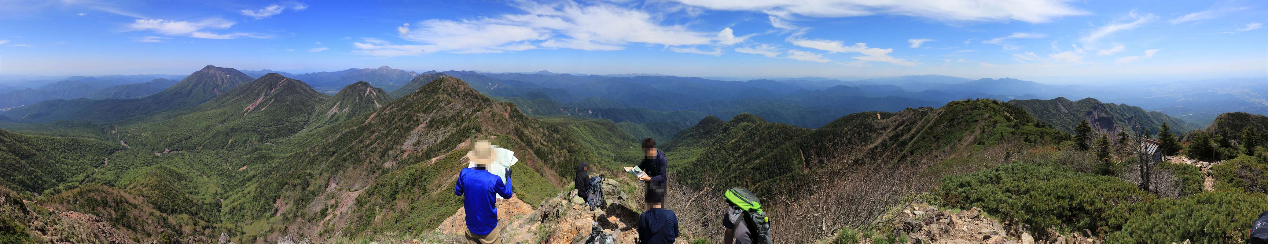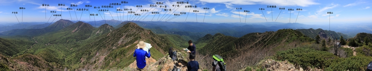 山頂から北側を中心とした展望。誰かが口にした「日光白根山ってどこにありますか?」という疑問から派生し、その場に居合わせた各々(自分含む)が地図を取り出して山座同定大会が開催。楽しいひと時。
