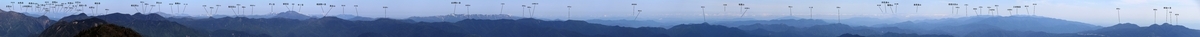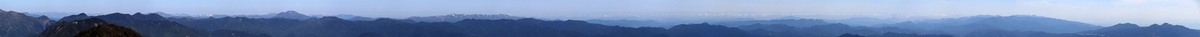 再び奥秩父山塊の望遠。小川山の右側に見えるのは南アルプスの仙丈ヶ岳や白根三山。奥秩父山塊についてもピークの一つ一つ細かく見える。