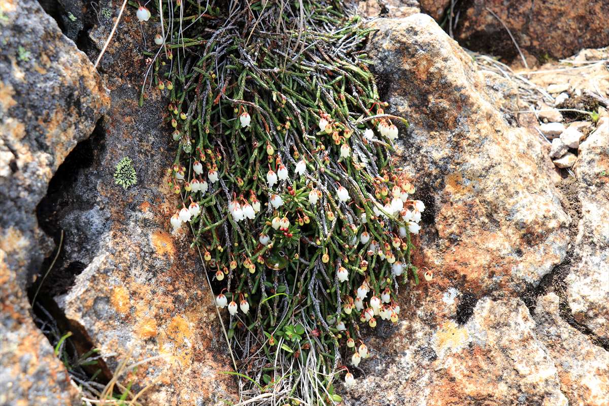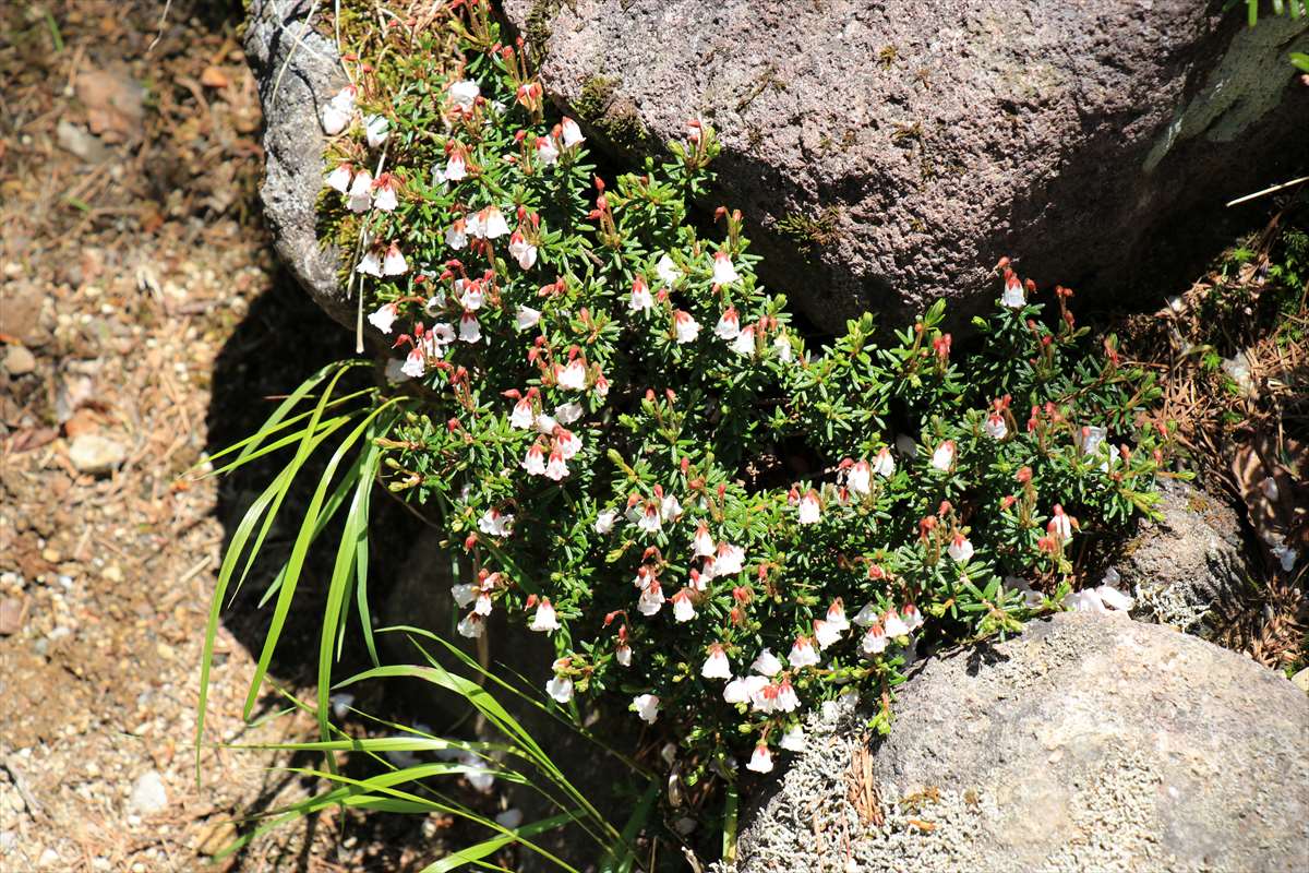 岩の隙間に可憐に咲くツガザクラ。