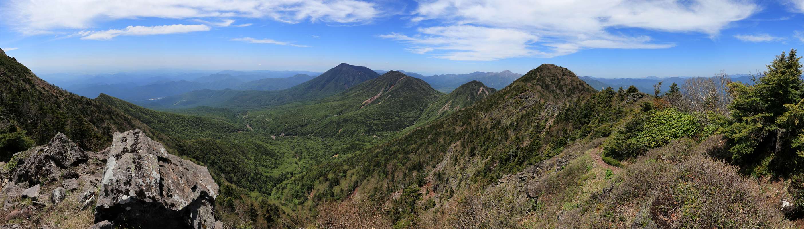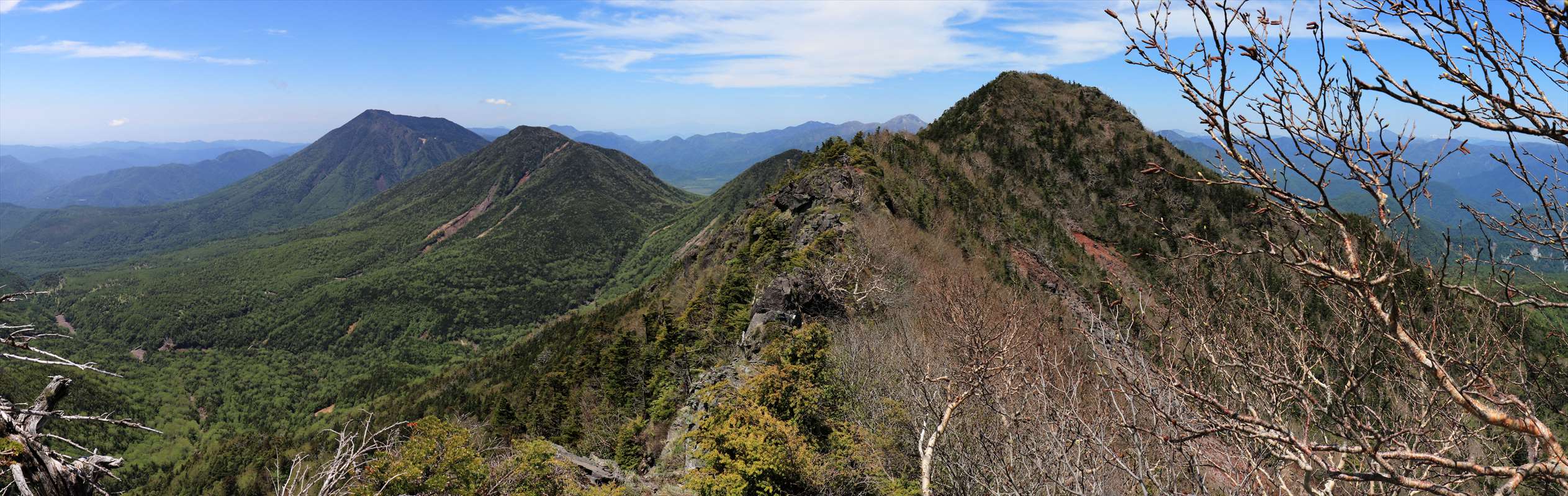 正面には帝釈山、小真名子山、大真名子山、男体山と順々に続く。帝釈山の背後には似たような山容の太郎山も。
