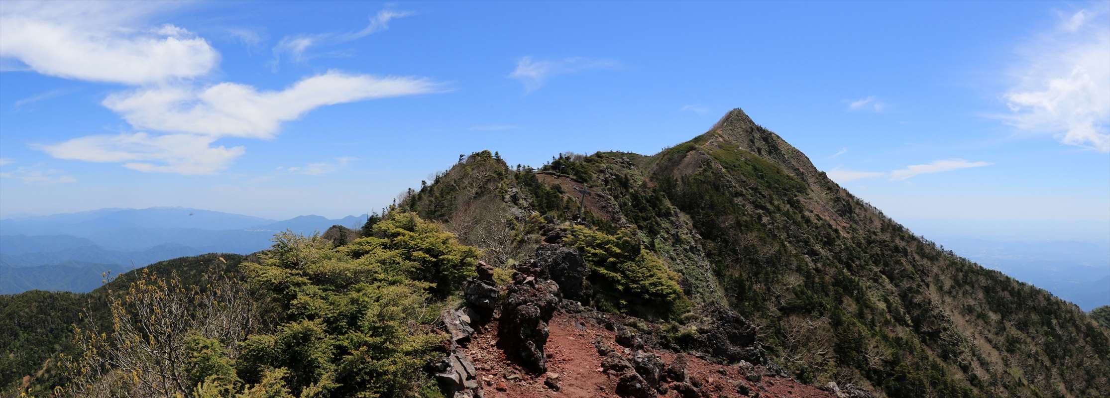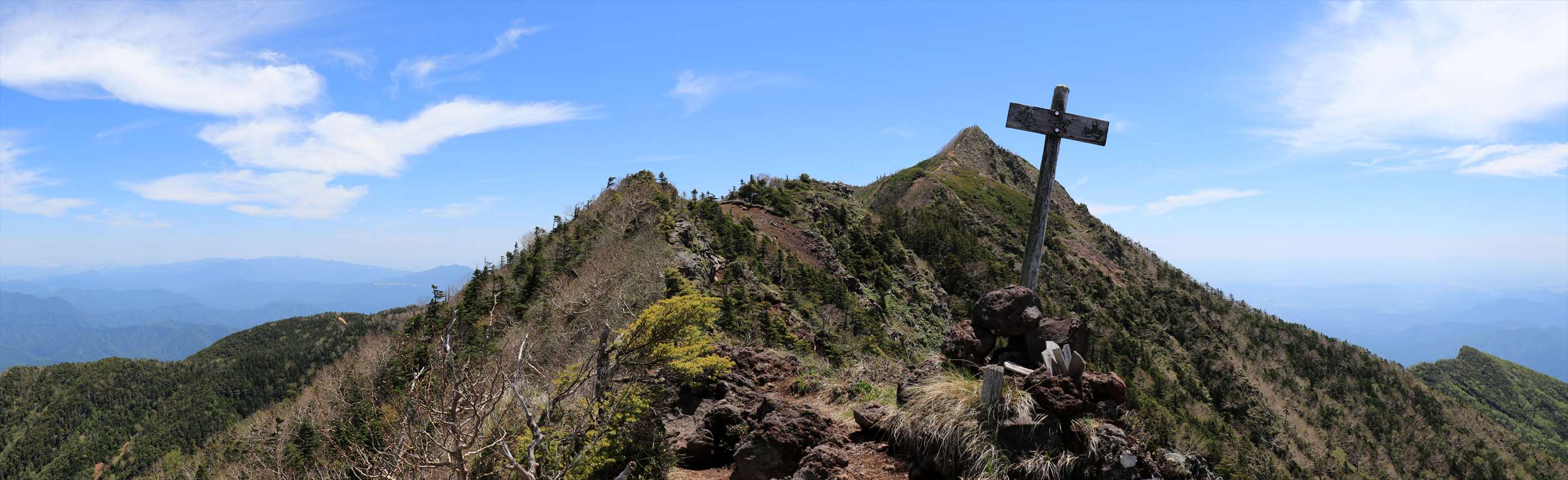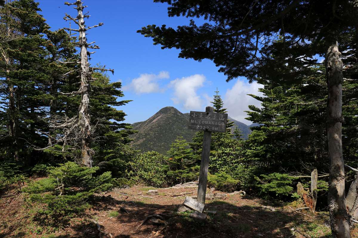 こちらは、これまで歩いてきた女峰山と小真名子山の方面。雲は流れ再び快晴に。