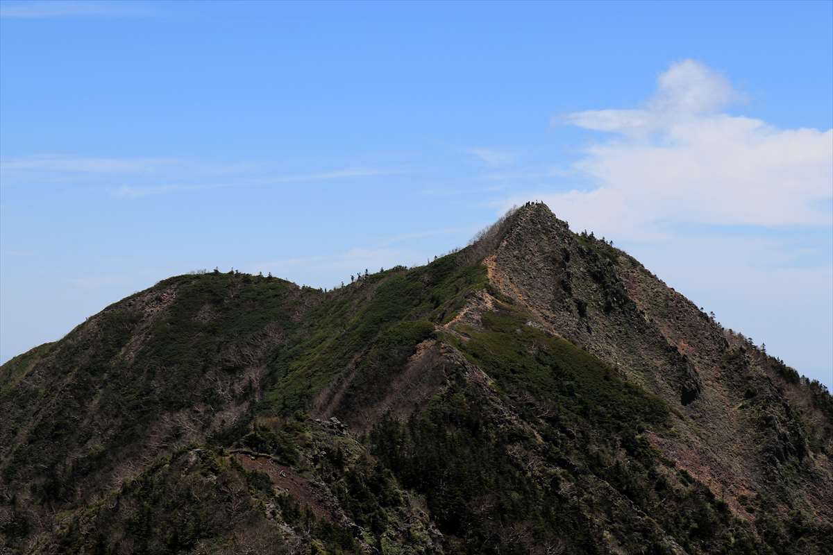 女峰山にだいぶ近付いてきた所。山頂には何人かの人の姿が見えます。