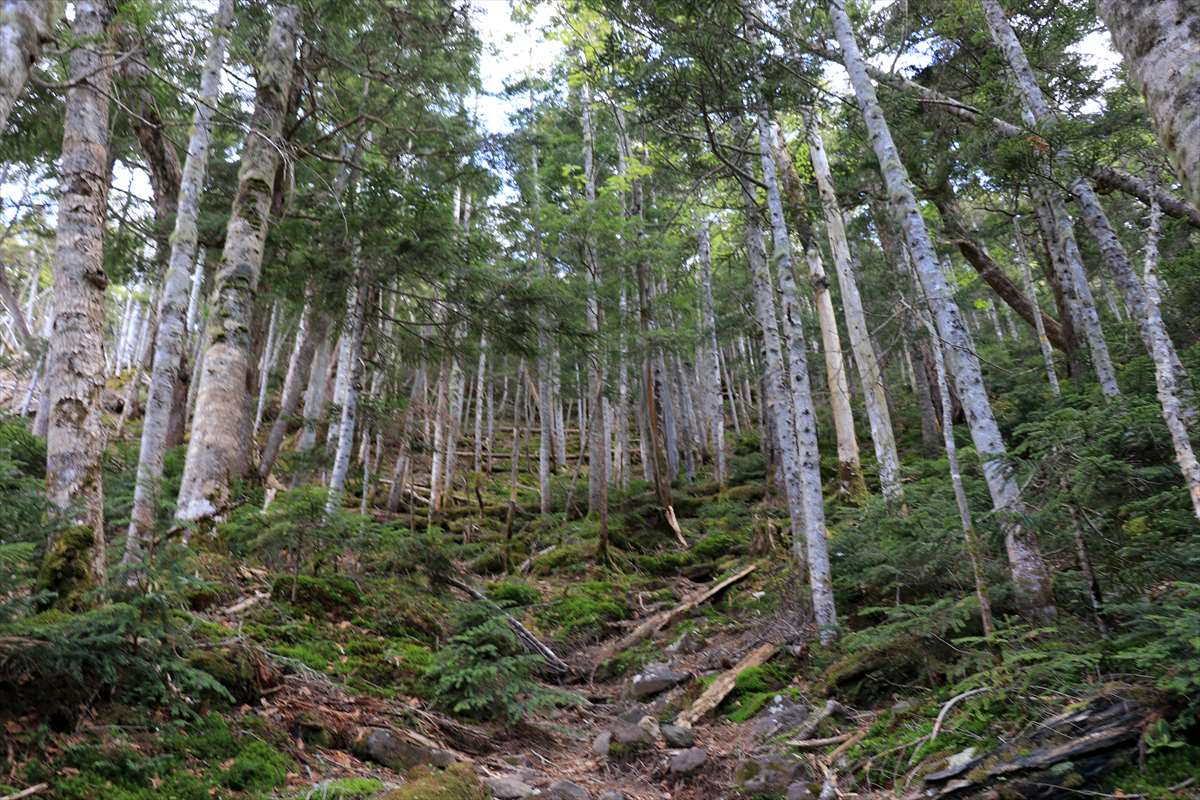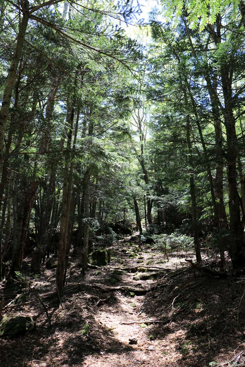 小真名子山への登り。最初はこれまで同様の樹林帯の中を進む。