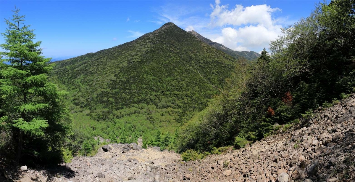 ガレ場のトップから同方面。ここを下るのは嫌だろうなーと思いながら登ってました。