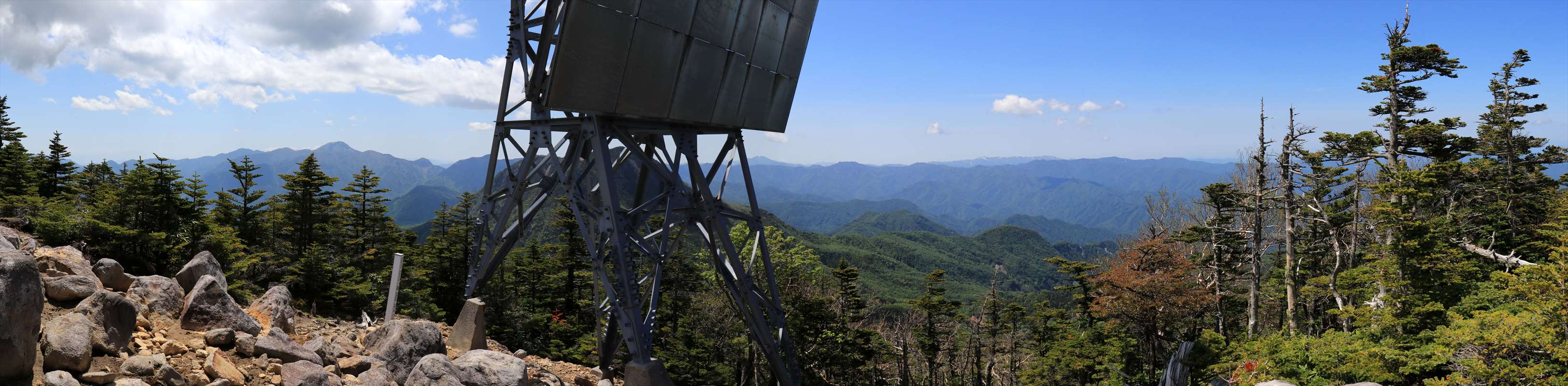 小真名子山から北方面の展望。反射板が山頂に建っており、そちらの方面は開けていて眺めが良いです。