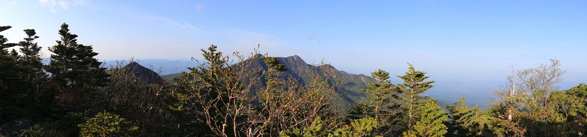 帝釈山からの展望。女峰山からは見えづらかった太郎山がよく見えています。4つの独立峰が並んでいるような形ですね。