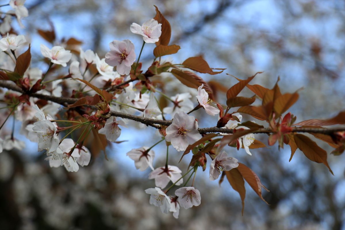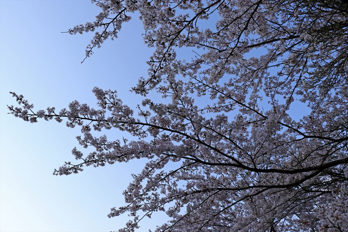 桜の花と青空。この日も天気は良さそうですが、天気予報では好天が続くのはこの日までで翌日以降は崩れるという。