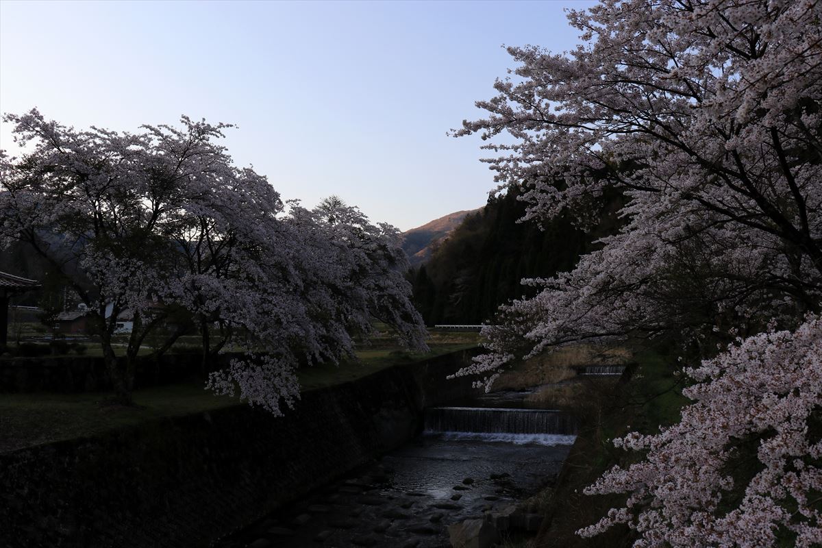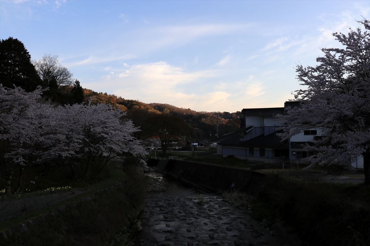 橋の上から飯梨川の上流を臨む。日没が近付いてきました。