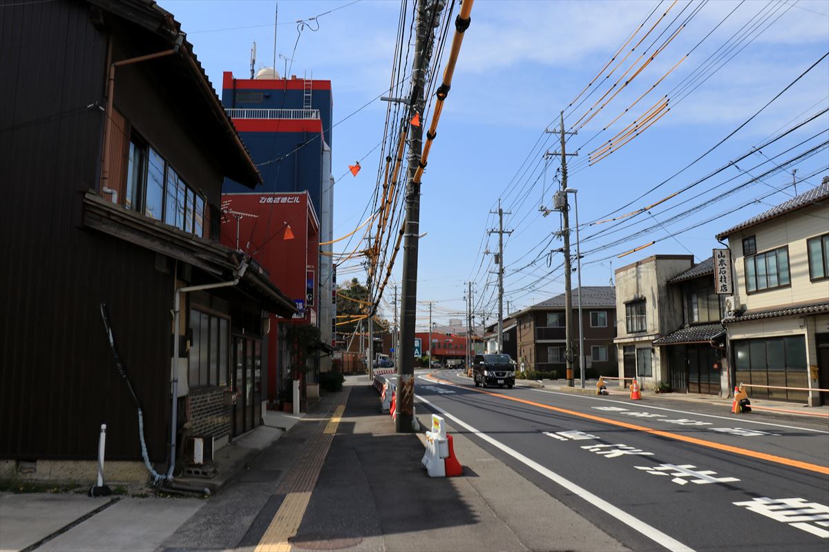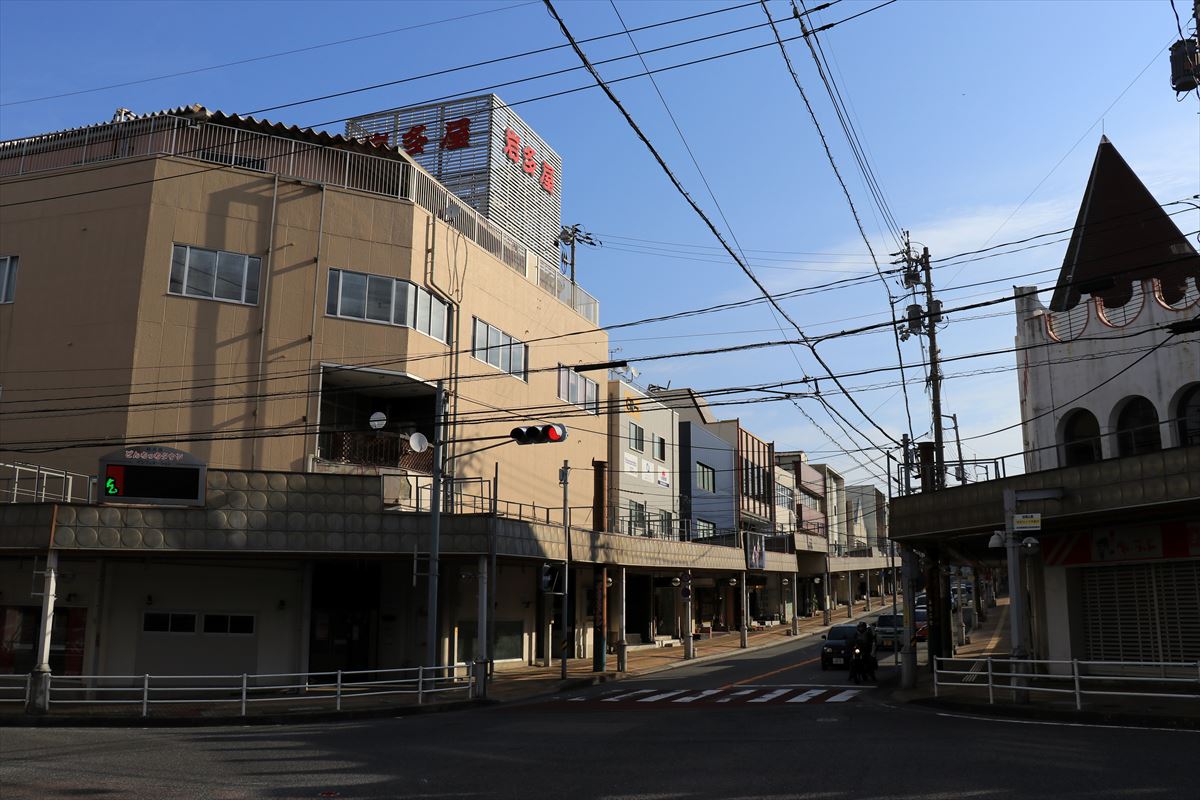 線路を潜った南側の八幡町の町並み。雰囲気良さそうな和菓子屋があって少し気になった。帰り際で刺身を調達した大田鮮魚店はこの通り沿いにあります。