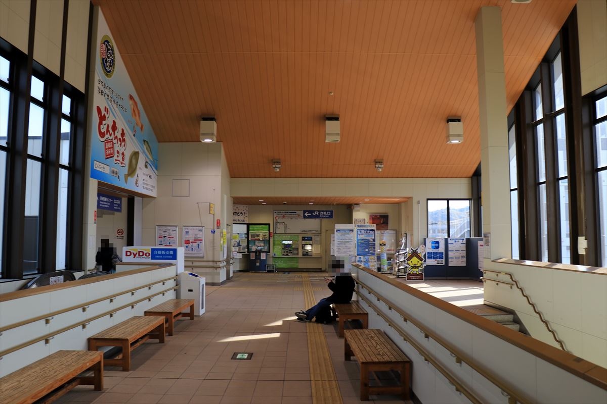 途中の御来屋駅にて列車の交換待ち。無人駅ですが、ここは山陰地方で最も古い木造駅舎が残る駅とされている。内外もレトロに改装されています。