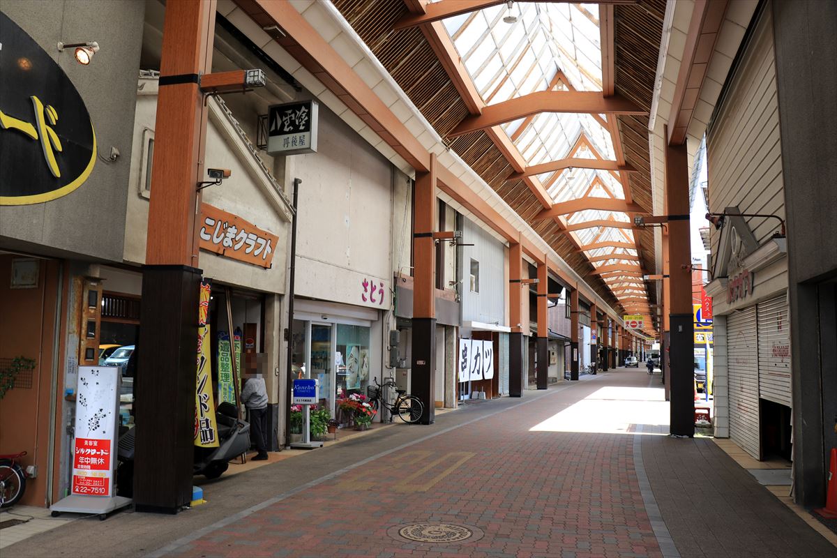 駅前には地方都市にありがちなアーケード商店街が伸びる。