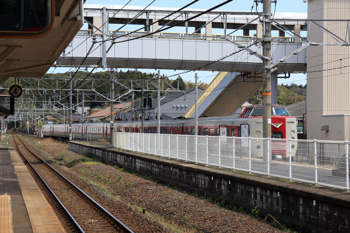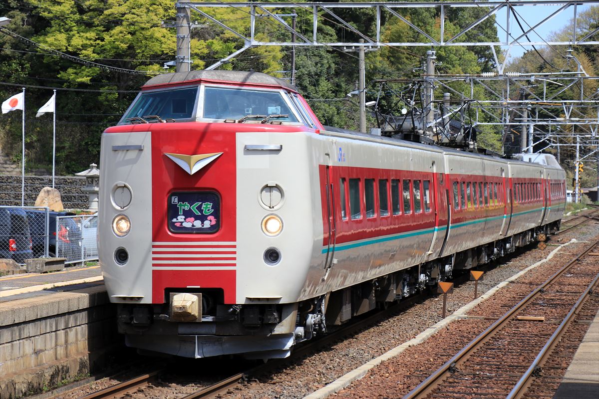 反対側から岡山方面からやってきた特急やくもが入線。国鉄時代から存在する古いタイプの車両ですが、既に引退が決まっているという事もあって沿線では写真を撮ってる人が多かったです。