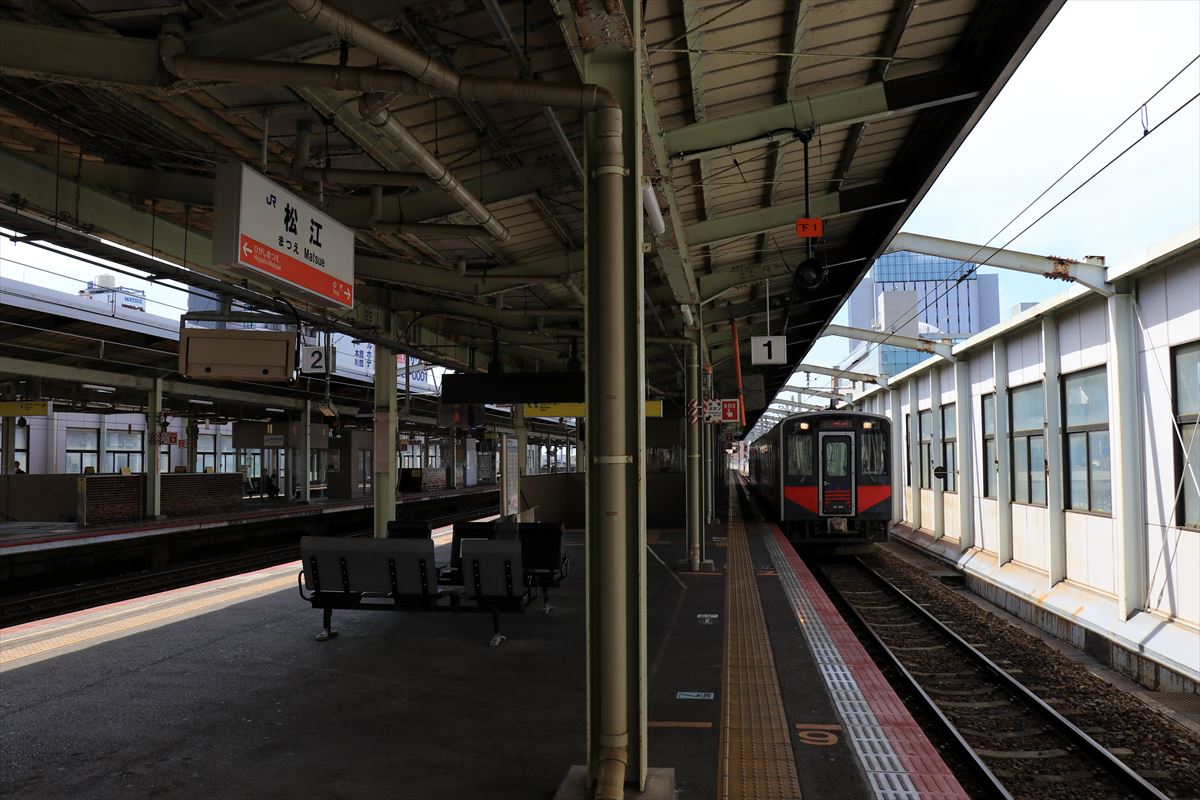 その松江駅でも暫く停車していました。松江には何度も訪れているのですが、現存天守である松江城には一度も行った事がないので是非とも行ってみたい……のですが、今回は安来の観光がメインなのでそのまま素通りです。