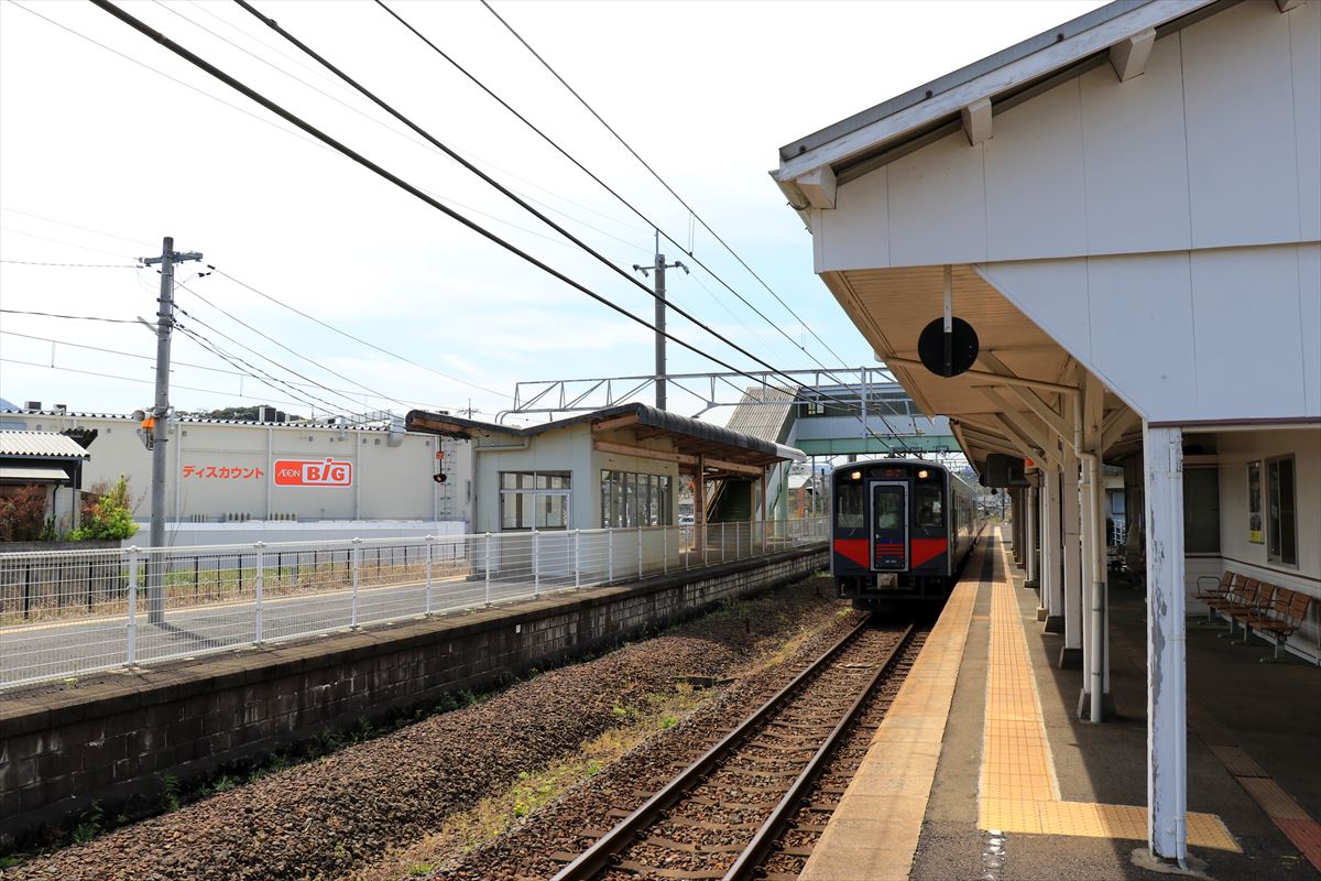 少し進んだ先の赤碕駅でも列車交換。米子と倉吉の区間では主要駅っぽい駅ですが、こちらの駅も無人化されている。