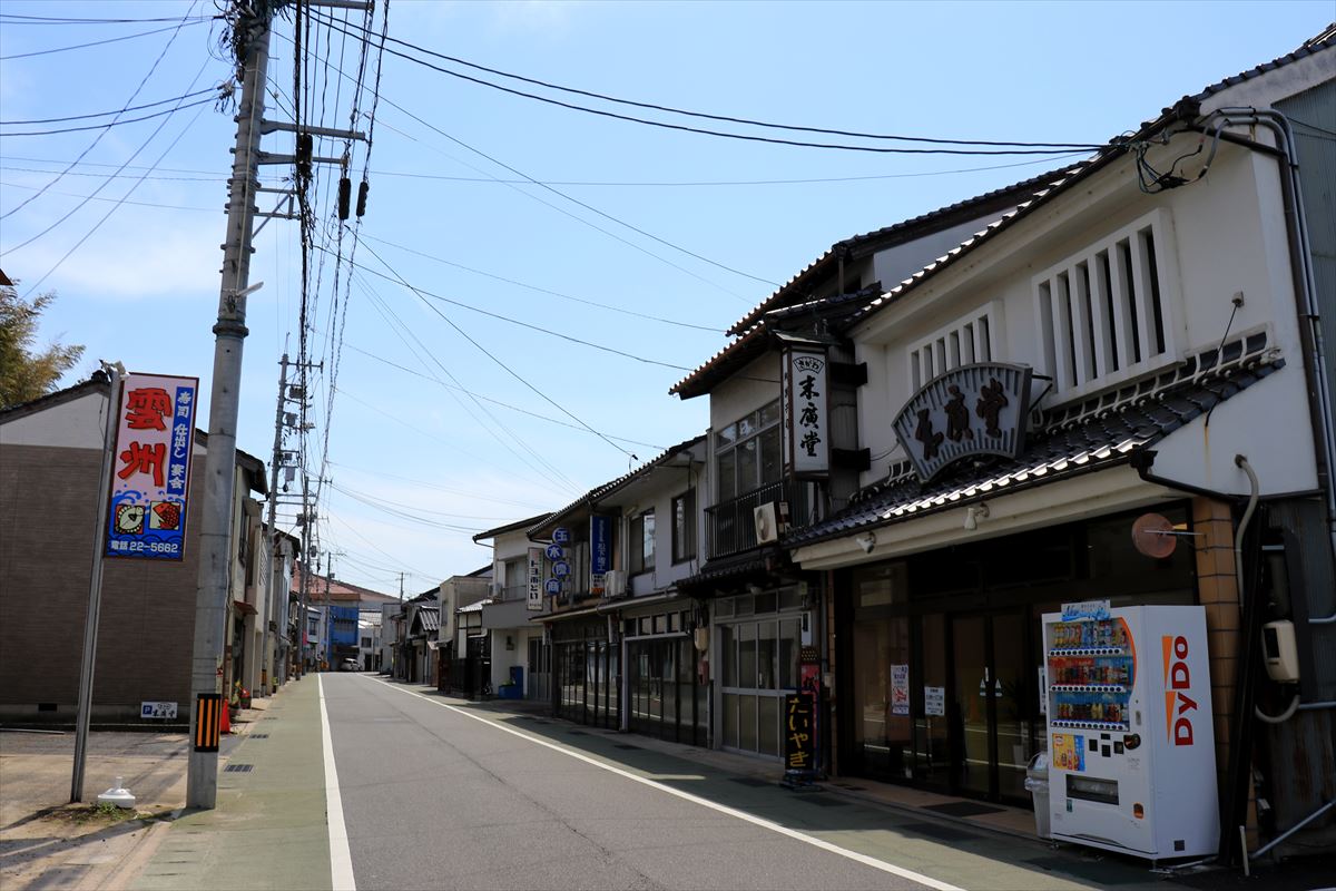 自転車を走らせて、まずは安来の中心市街地へと向かいます。安来とその周辺地域は朝一番に歩いた波佐と同様に古くからたたら製鉄が盛んで、北前船西廻り航路の寄港地でもあり山陰街道の宿場町でもあった安来の町は、そこで産出された鉄等を始めとした交易品の取引で発展した商都でもありました。