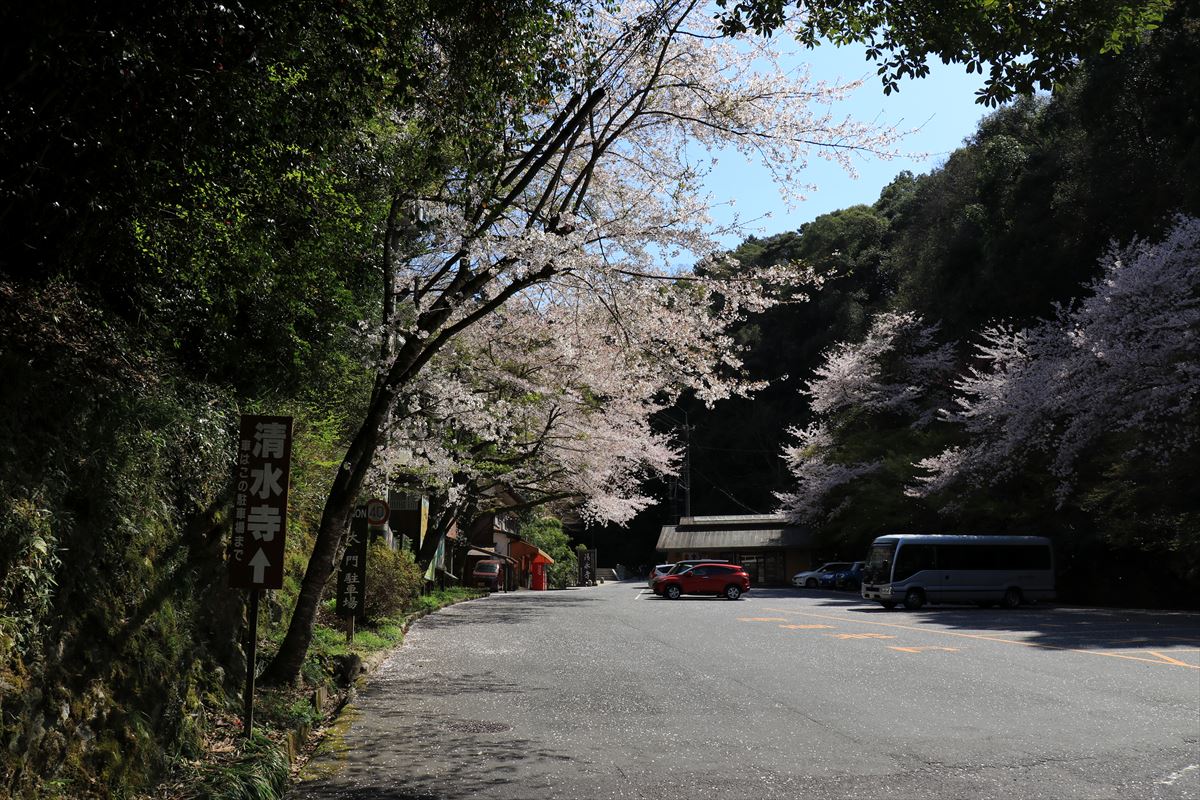 更に山の方へと進んでいくと清水寺の参拝者用の駐車場に到着しました。この辺りも桜の花は満開。