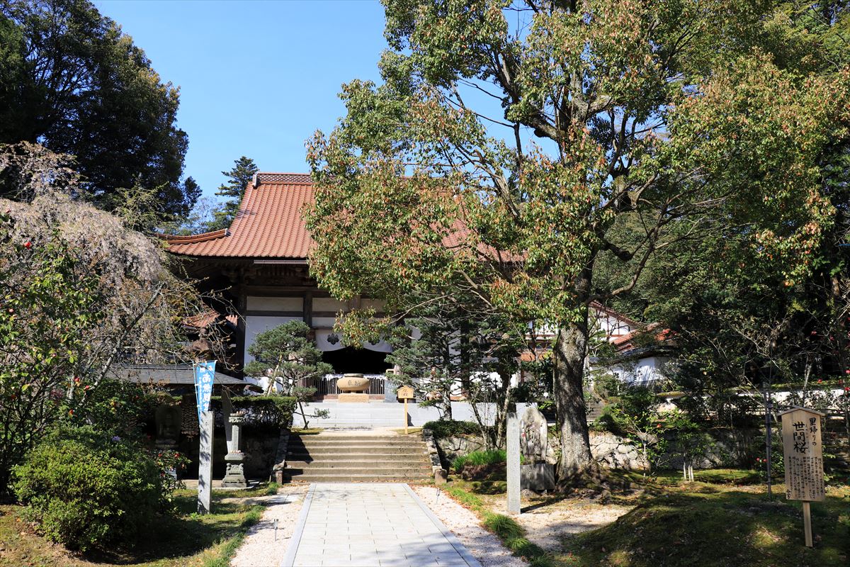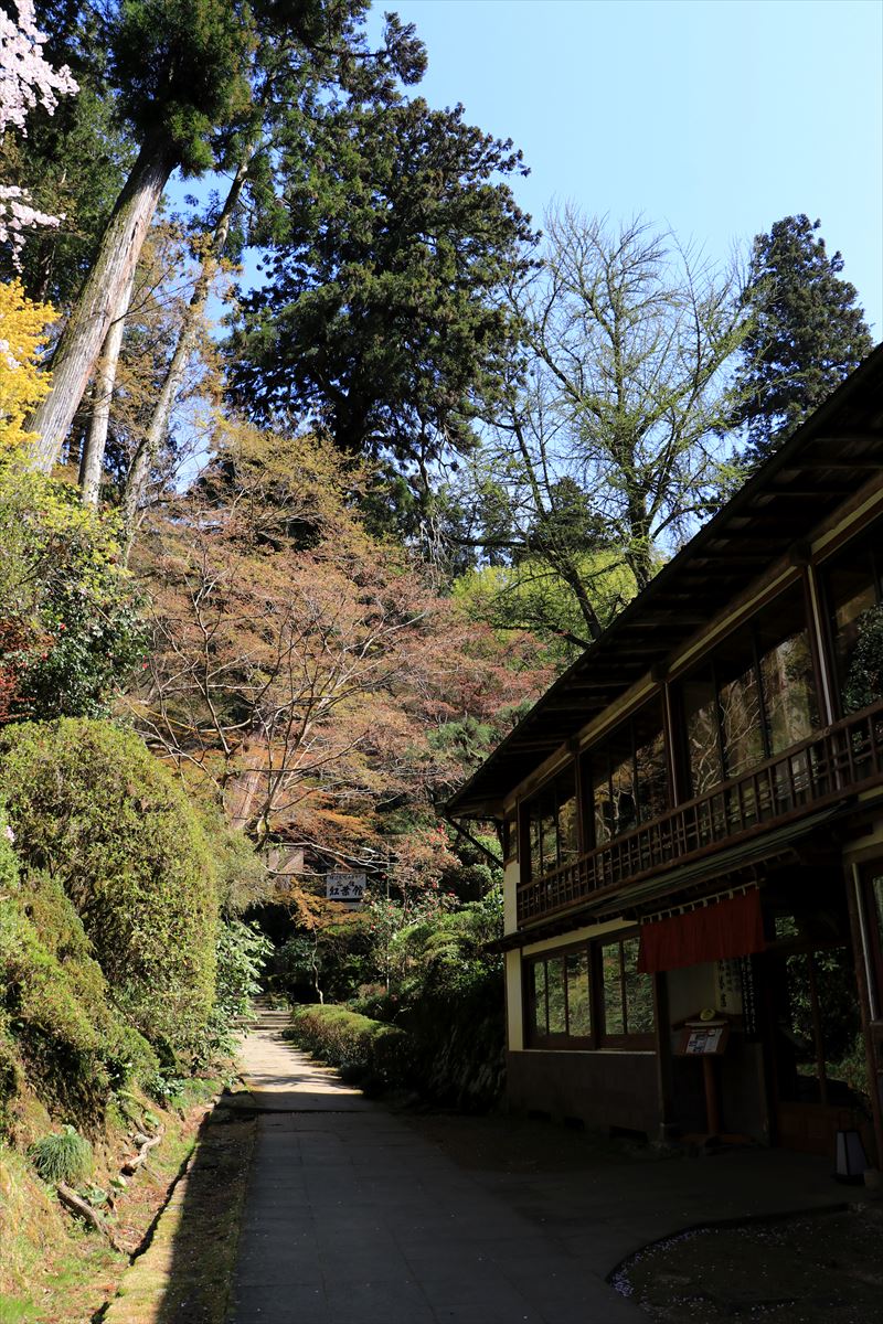 こちらは開山堂。三重塔は現在は根本堂の奥の山際に位置していますが、戦国時代より前はこの場所に建っていたようです。