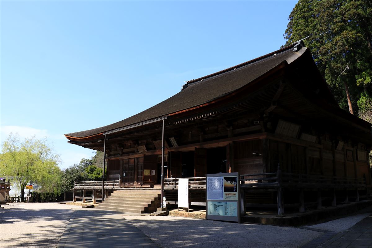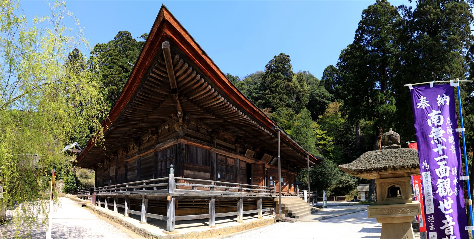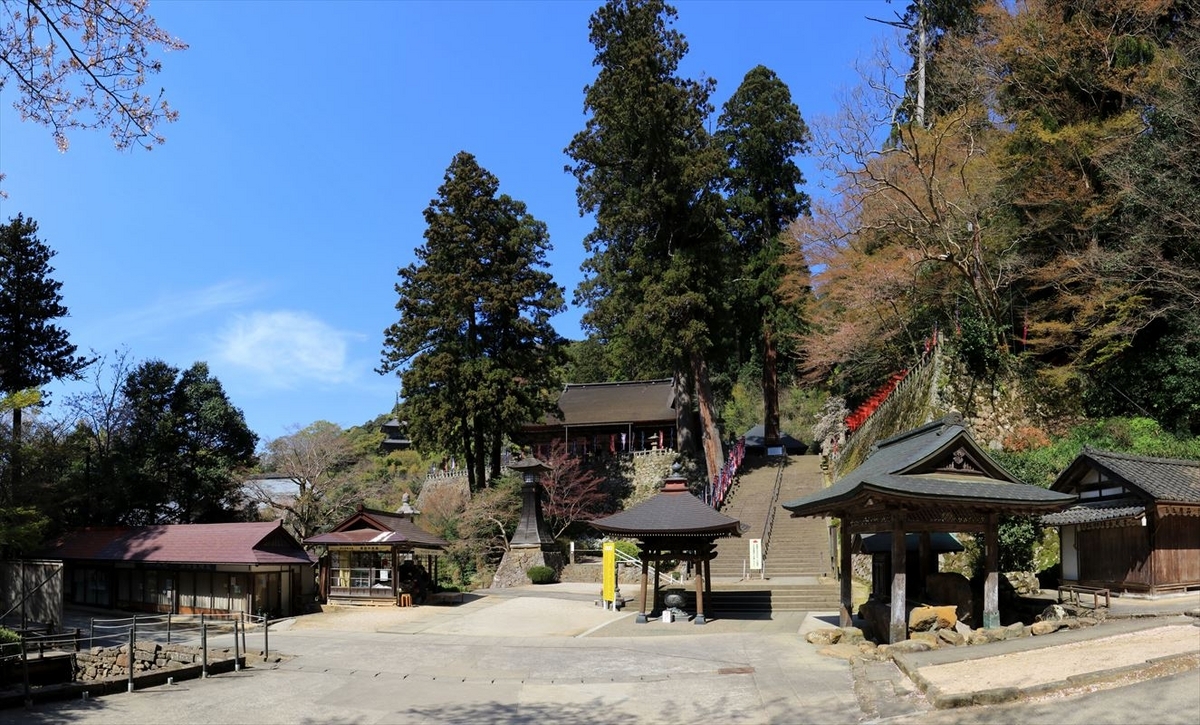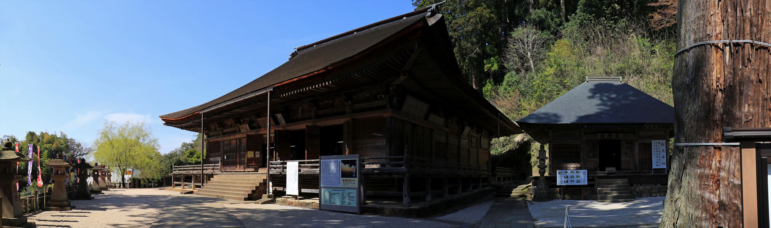 大階段を登った先にある根本堂。戦国時代の戦火から唯一免れたこちらの建物は室町時代の建築で重要文化財に指定されています。