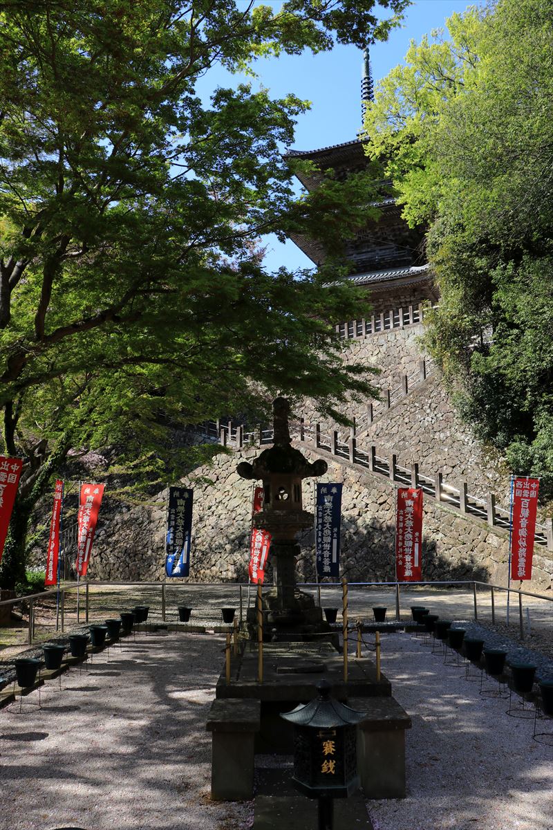 山側に進んでいくと安来観光における最初の目的地である清水寺(安来清水寺)の三重塔が見えてきました。