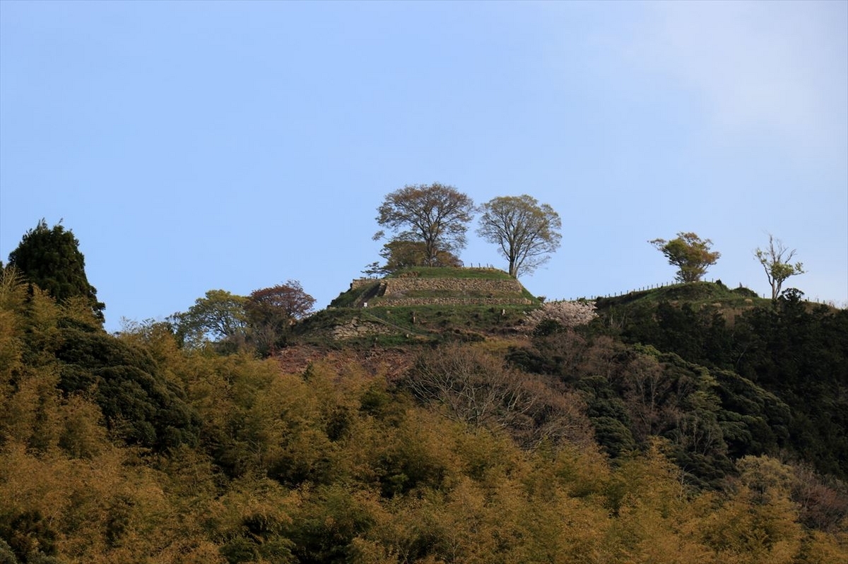 山頂部の望遠。段々状となった石垣が麓からもよく見える。