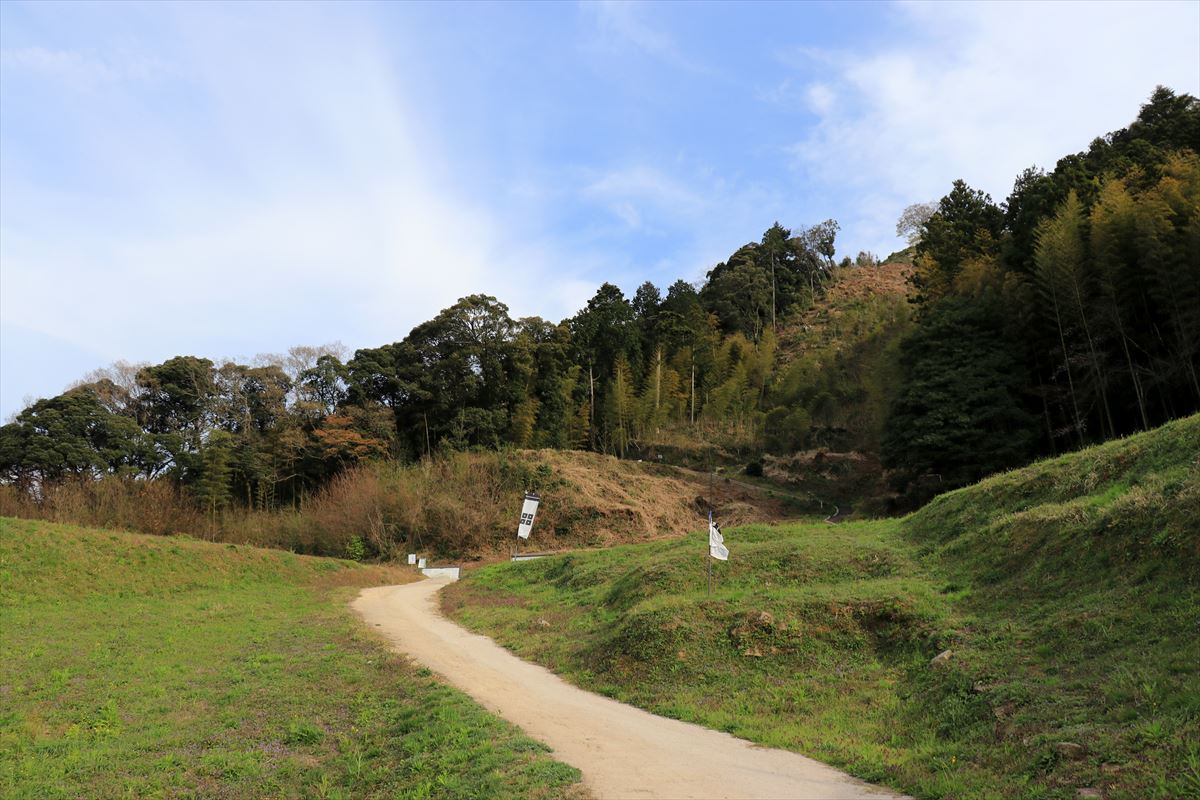 そこまで急ではない傾斜の坂道を登っていく。少し先に進んだ所が大手門の跡。