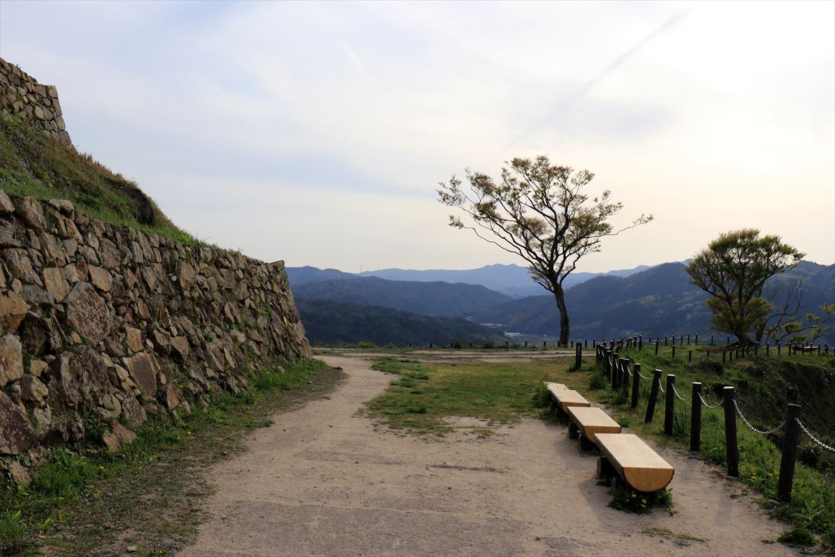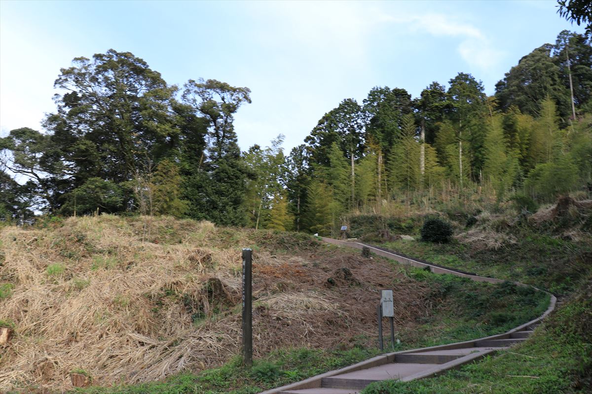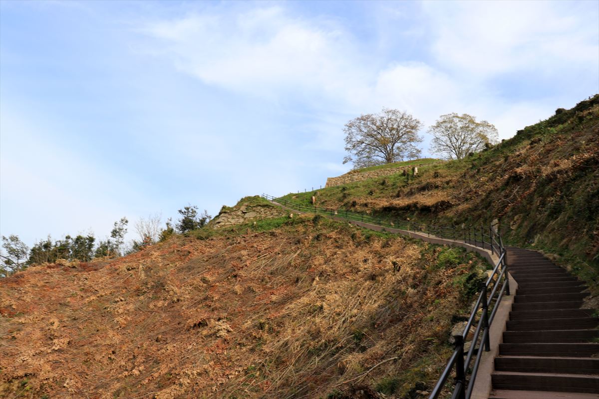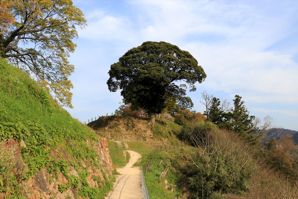 トラバースする形の脇道を抜けて本丸を目指していく。奥に見える巨木が立っている場所が本丸のようです。