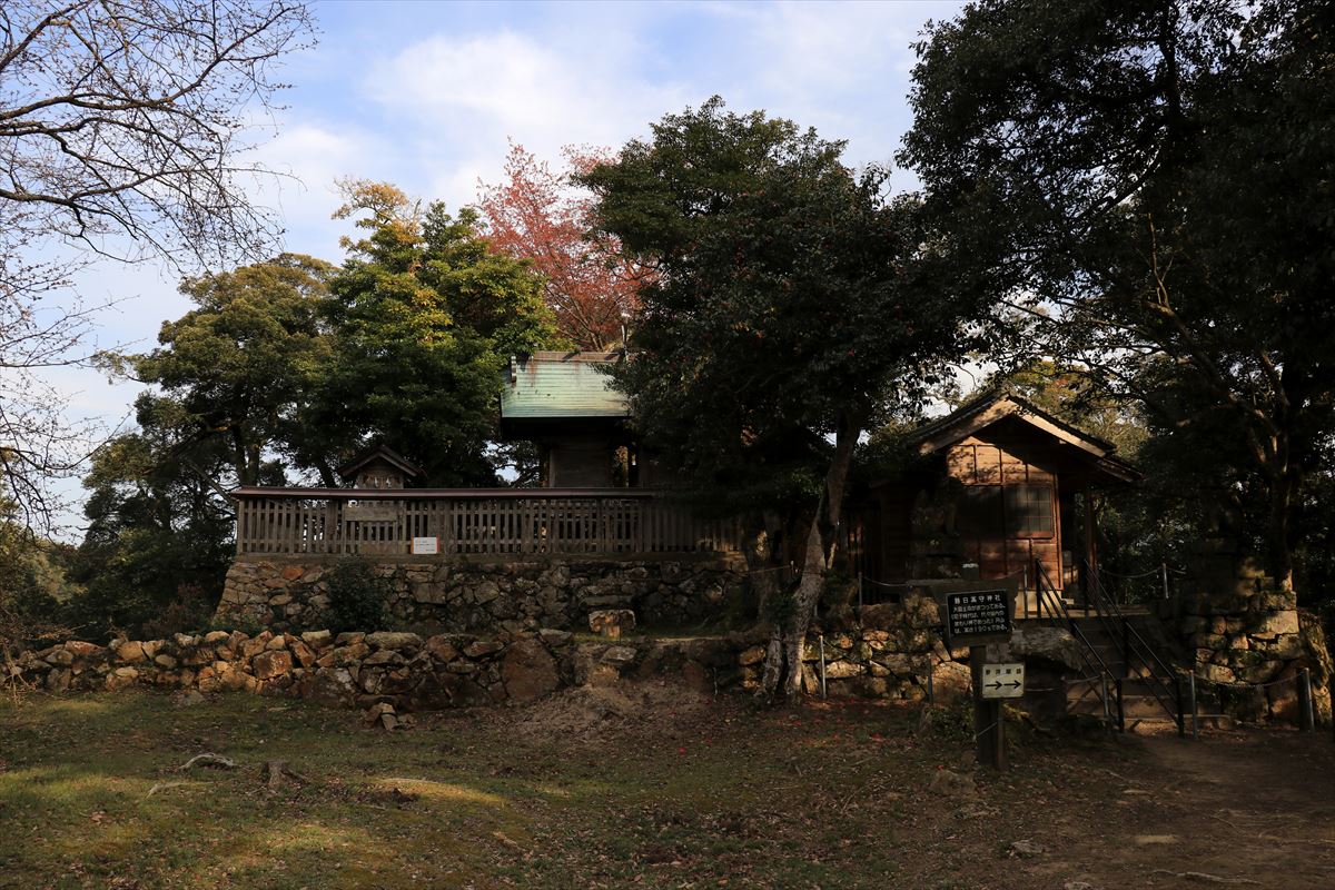 本丸の奥に建つ勝日高守神社。城内の守り神として、尼子氏や毛利氏といった時代毎の城主に崇拝されたという。