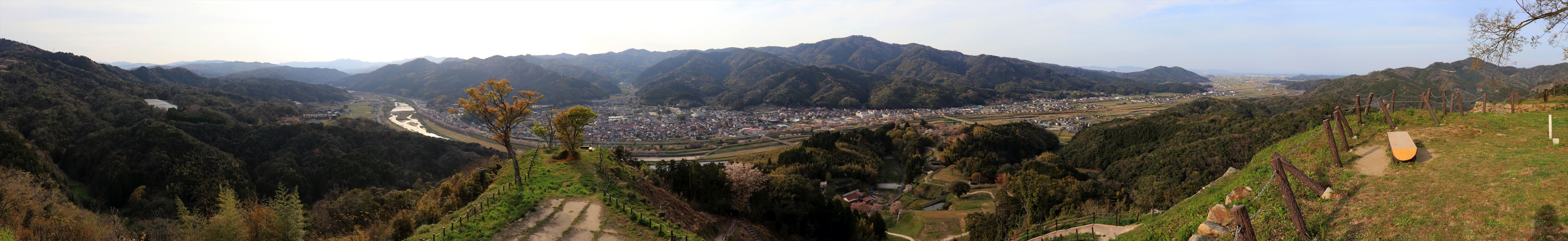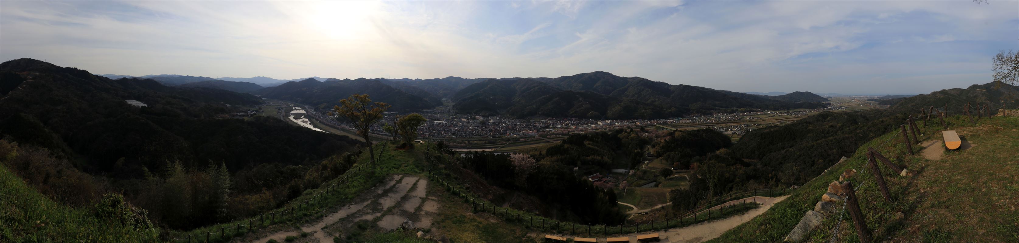 三ノ丸からの展望。谷に面した所にあるので、広瀬の町並みや飯梨川沿いといった谷間の風景を俯瞰する事ができる。