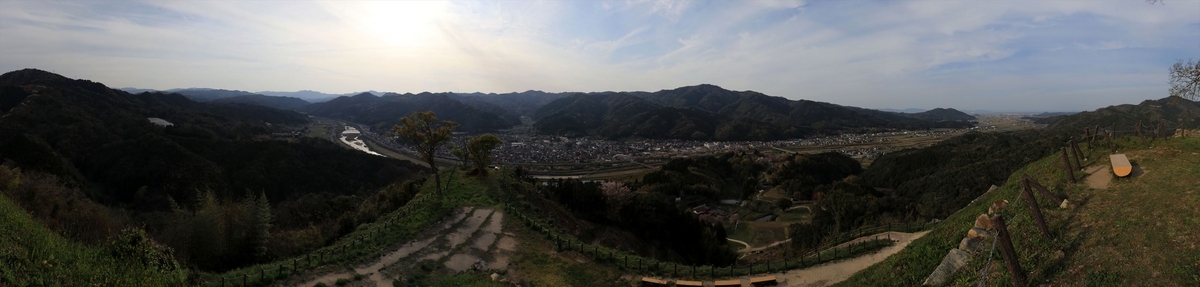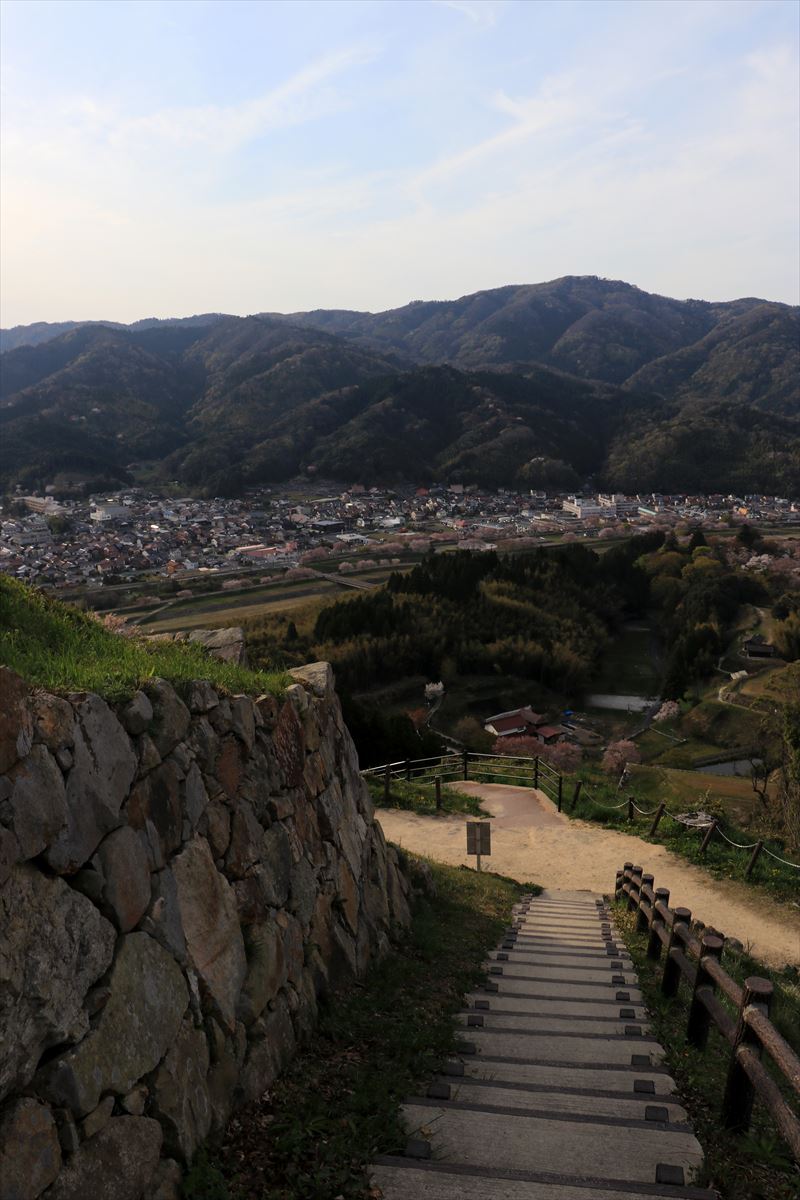 徐々に近付いてきた月山富田城と、その麓に広がる広瀬の町。