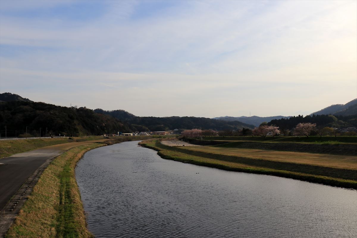 平野部を抜けた後は飯梨川に沿って進んでいく。以降は上流部に登り詰めていく形となるので、いくら変速機付きの自転車といえど少し大変。