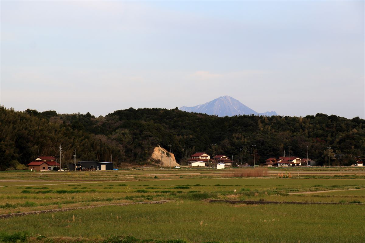 能義平野を横断するような形で自転車を走らせていく。途中、往路でも見かけた大山が見えました。