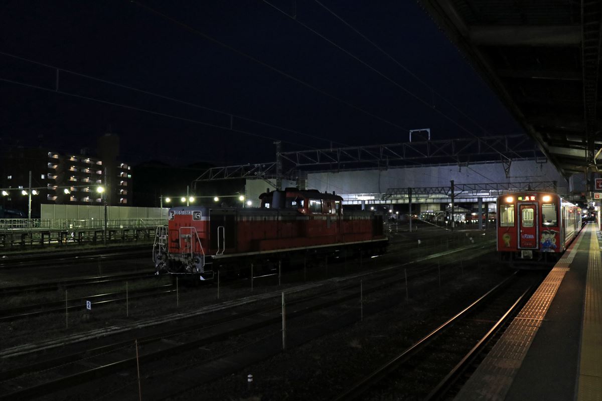 駅裏の留置線には今や貴重な凸型ディーゼル機関車、DD51を見かけたので思わず1枚。現在でも構内入れ替え用として使用されているようです。