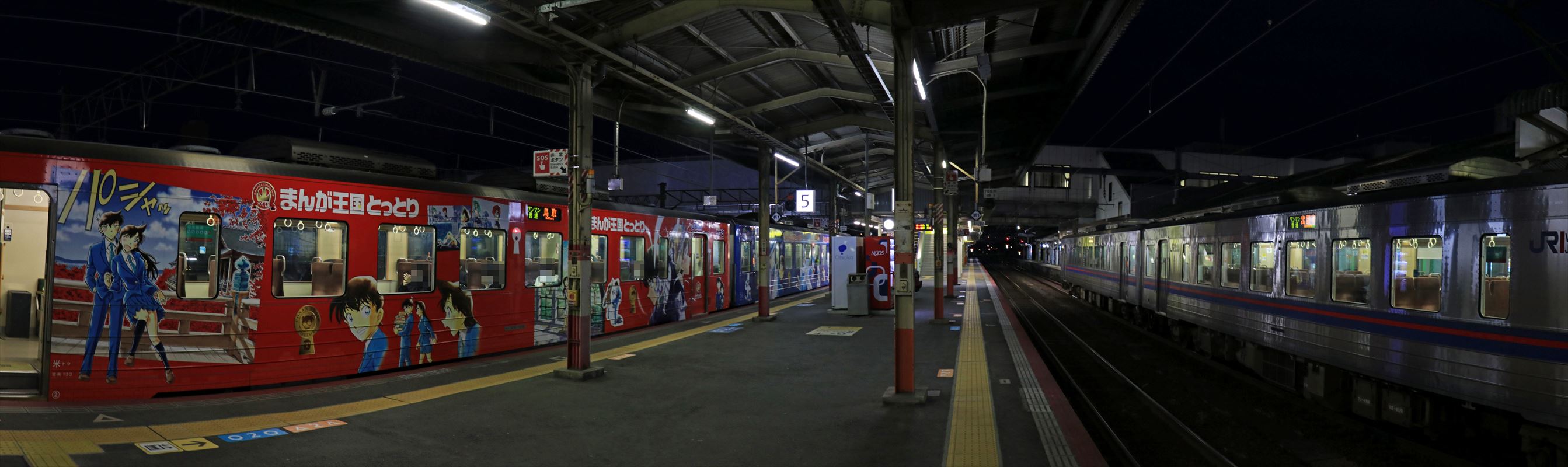 買い物を済ませて米子駅に戻ります。そうこうしている間にすっかり日も暮れてました。