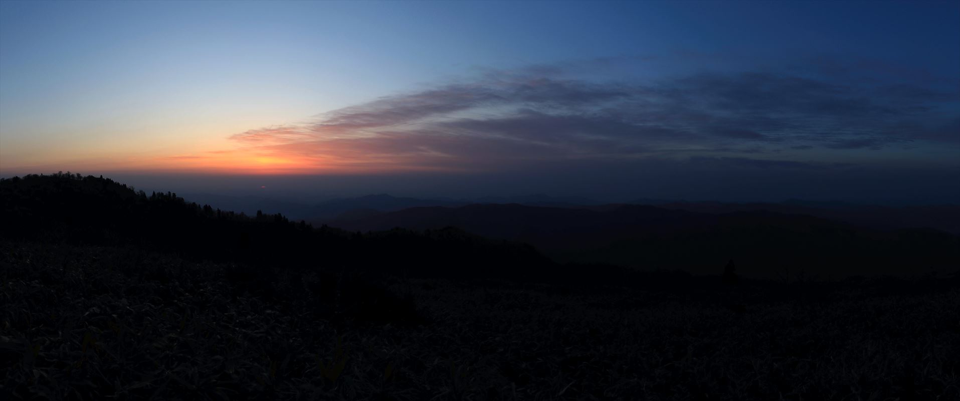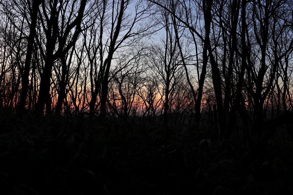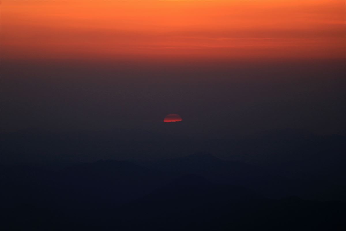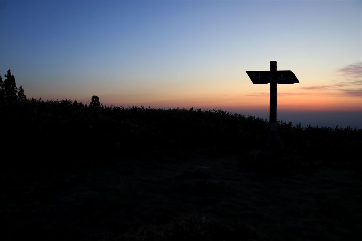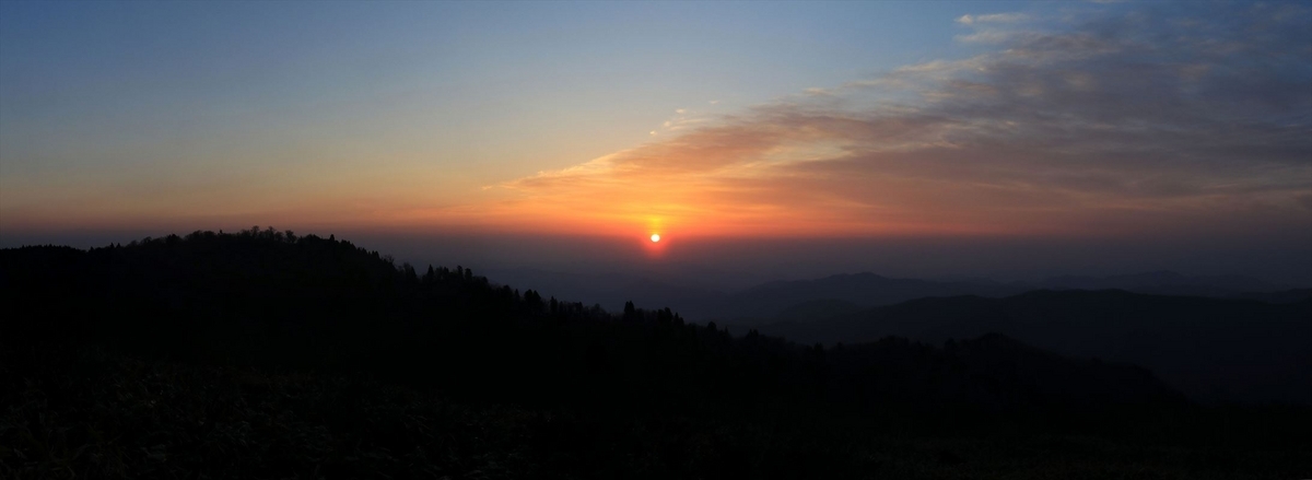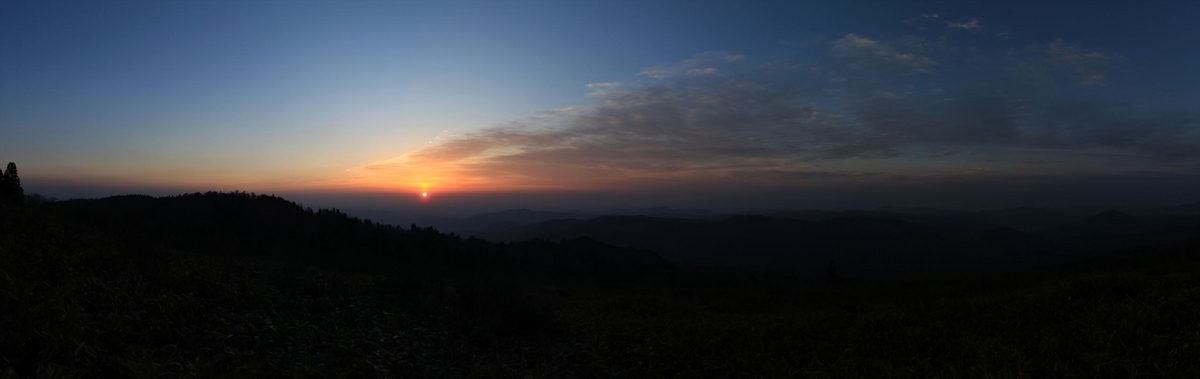 この日は十方山の山頂から一日が始まります。目を覚ました頃に外を覗いてみると既に東の空が明るくなり始めていました。