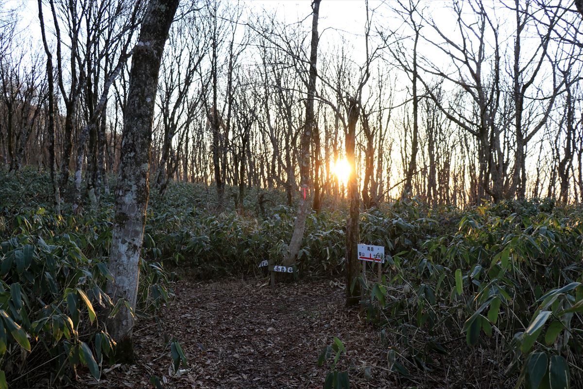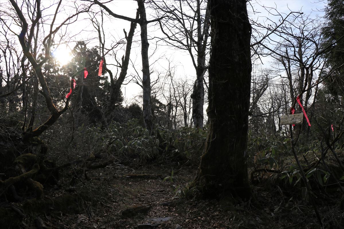 十文字峠から聖山へと向かいます。余裕があればこの日の内に展望の良い高岳まで行って翌朝日の出を……という予定でしたが、既に日没近い時間帯なので断念。